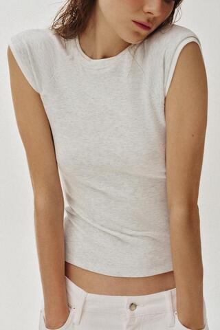 Футболка из пряжи с модалом. Круглый вырез и короткие рукава. Деталь с двойным эффектом ткани. Прямой низ.
