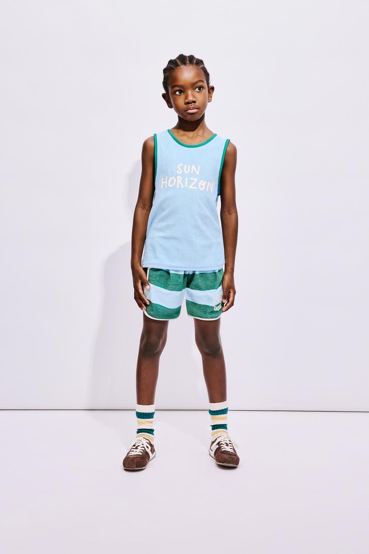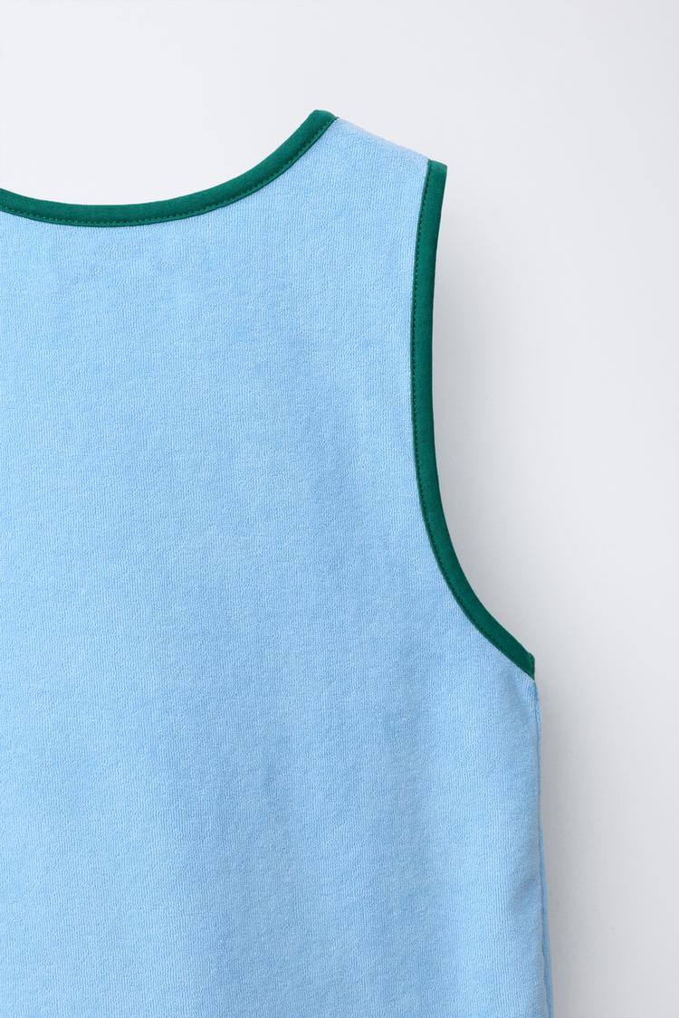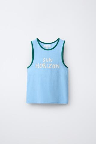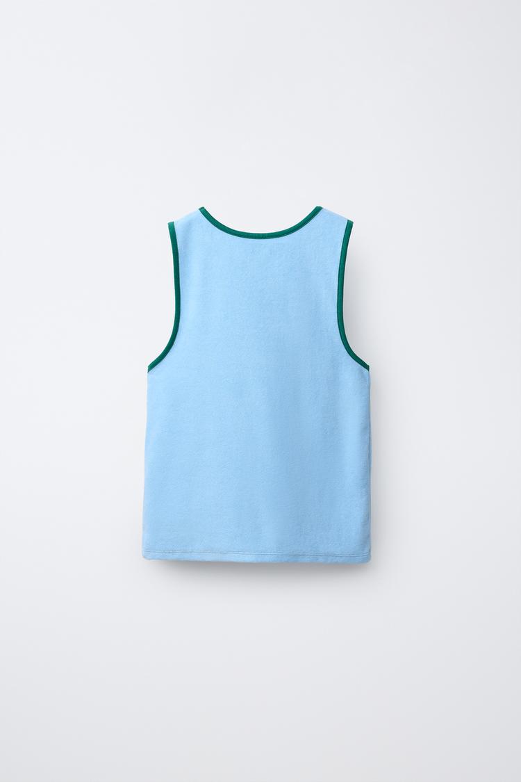 ZARA ФУТБОЛКА С ЭФФЕКТОМ МАХРОВОЙ ТКАНИ И НАДПИСЬЮ, ГОЛУБОЙ