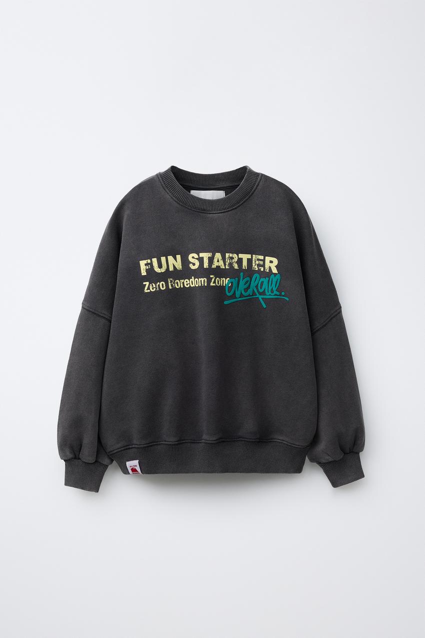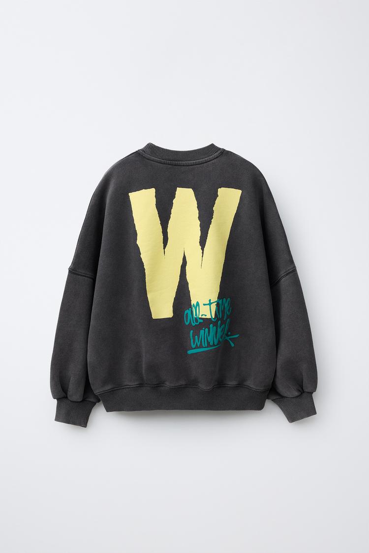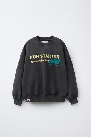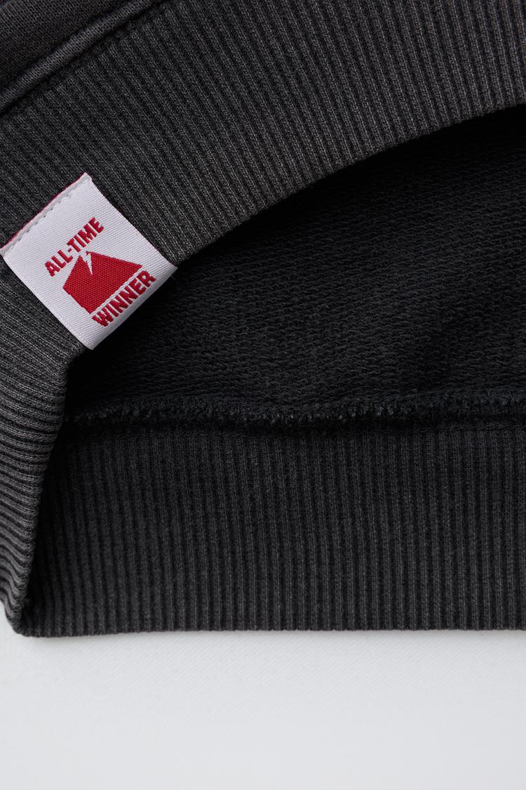 ZARA ФУТБОЛКА С ЭФФЕКТОМ ПОТЕРТОСТИ И НАДПИСЬЮ, АНТРАЦИТОВО-СЕРЫЙ