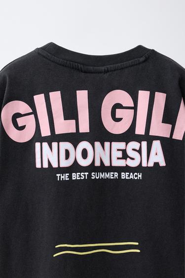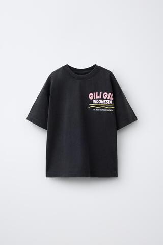ZARA ФУТБОЛКА С ЭФФЕКТОМ ПОТЕРТОСТИ И НАДПИСЬЮ, АНТРАЦИТОВО-СЕРЫЙ