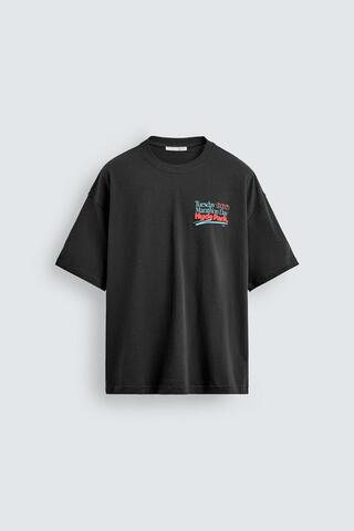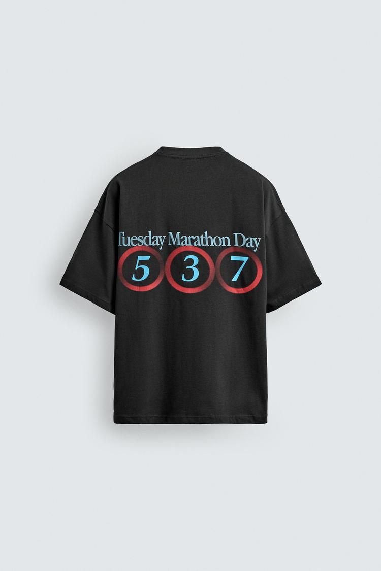 ZARA ФУТБОЛКА С ЭФФЕКТОМ ПОТЕРТОСТИ И НОМЕРАМИ, ЧЕРНЫЙ