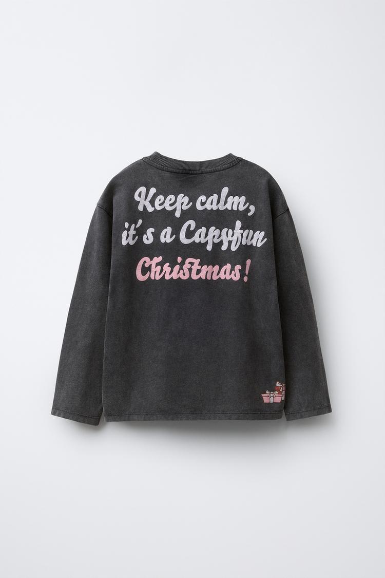 ZARA ФУТБОЛКА С ЭФФЕКТОМ ПОТЕРТОСТИ И ПРИНТОМ «КАПИБАРА CAPYFUN ©», АНТРАЦИТОВО-СЕРЫЙ