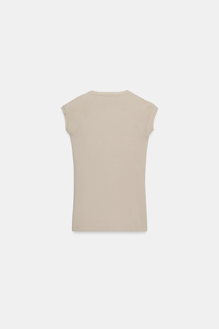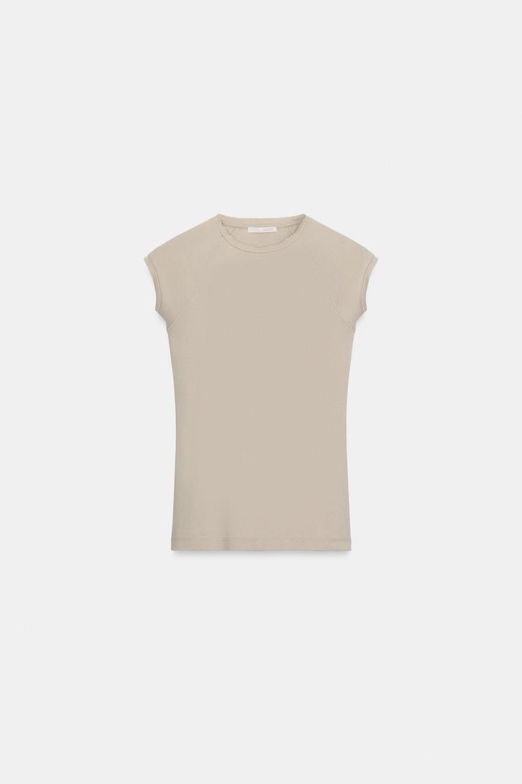 ZARA ФУТБОЛКА С ЭФФЕКТОМ ПОТЕРТОСТИ И РЕГЛАНОМ, БЕЖЕВЫЙ