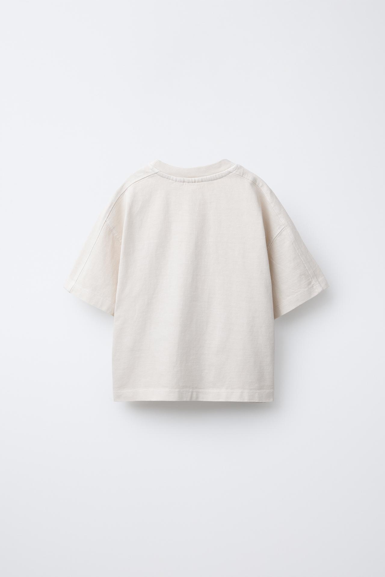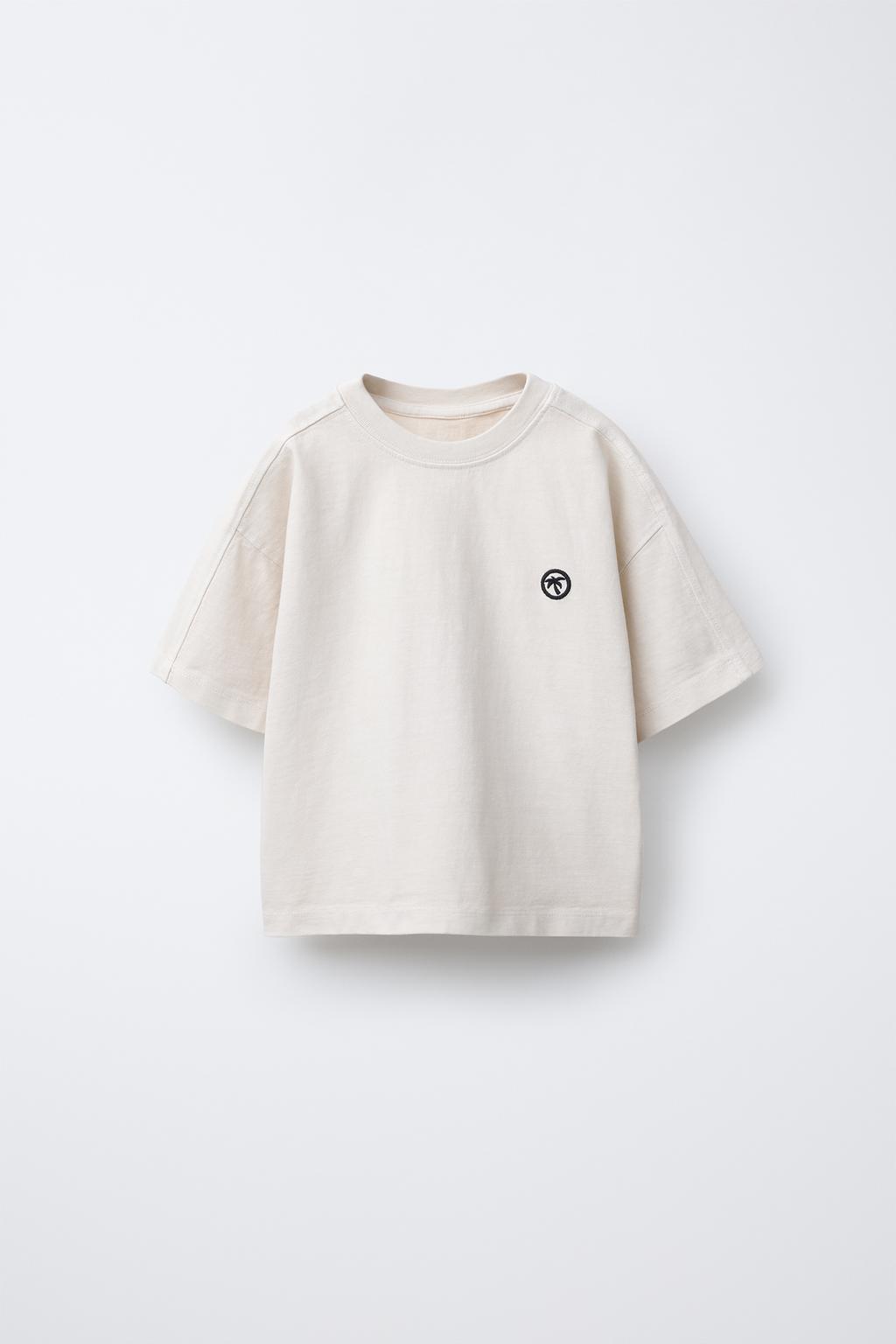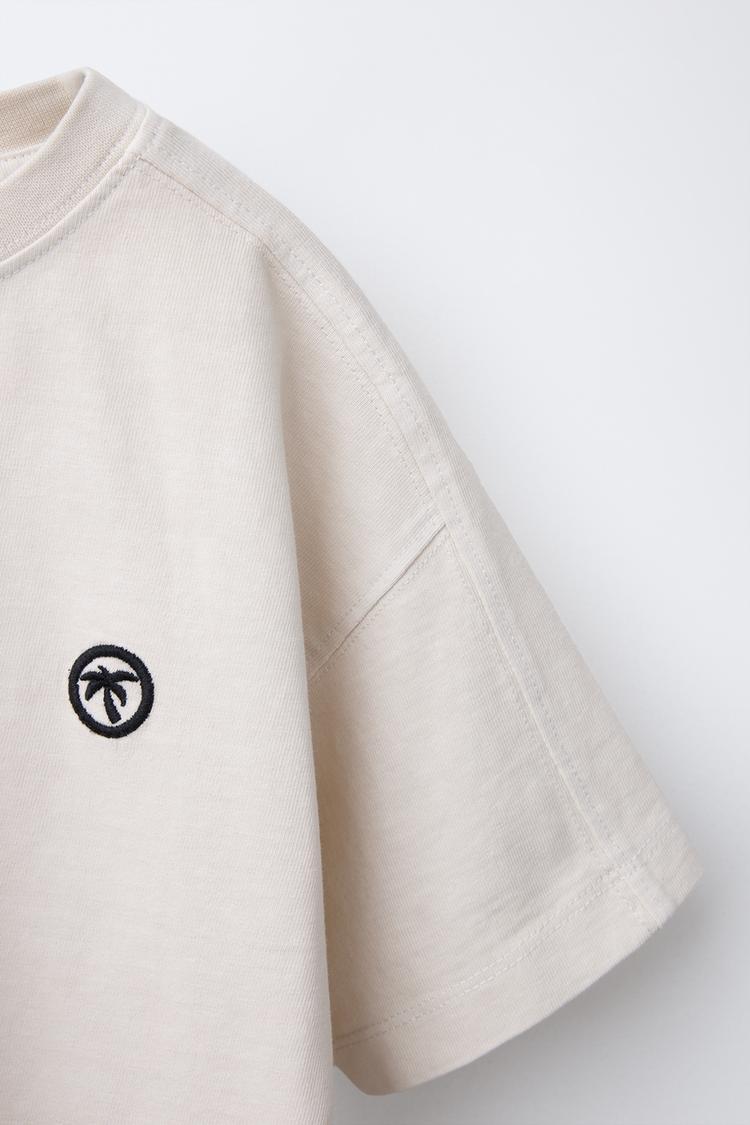 ZARA ФУТБОЛКА С ЭФФЕКТОМ ПОТЕРТОСТИ И ВЫШИВКОЙ «ПАЛЬМА», ЭКРЮ