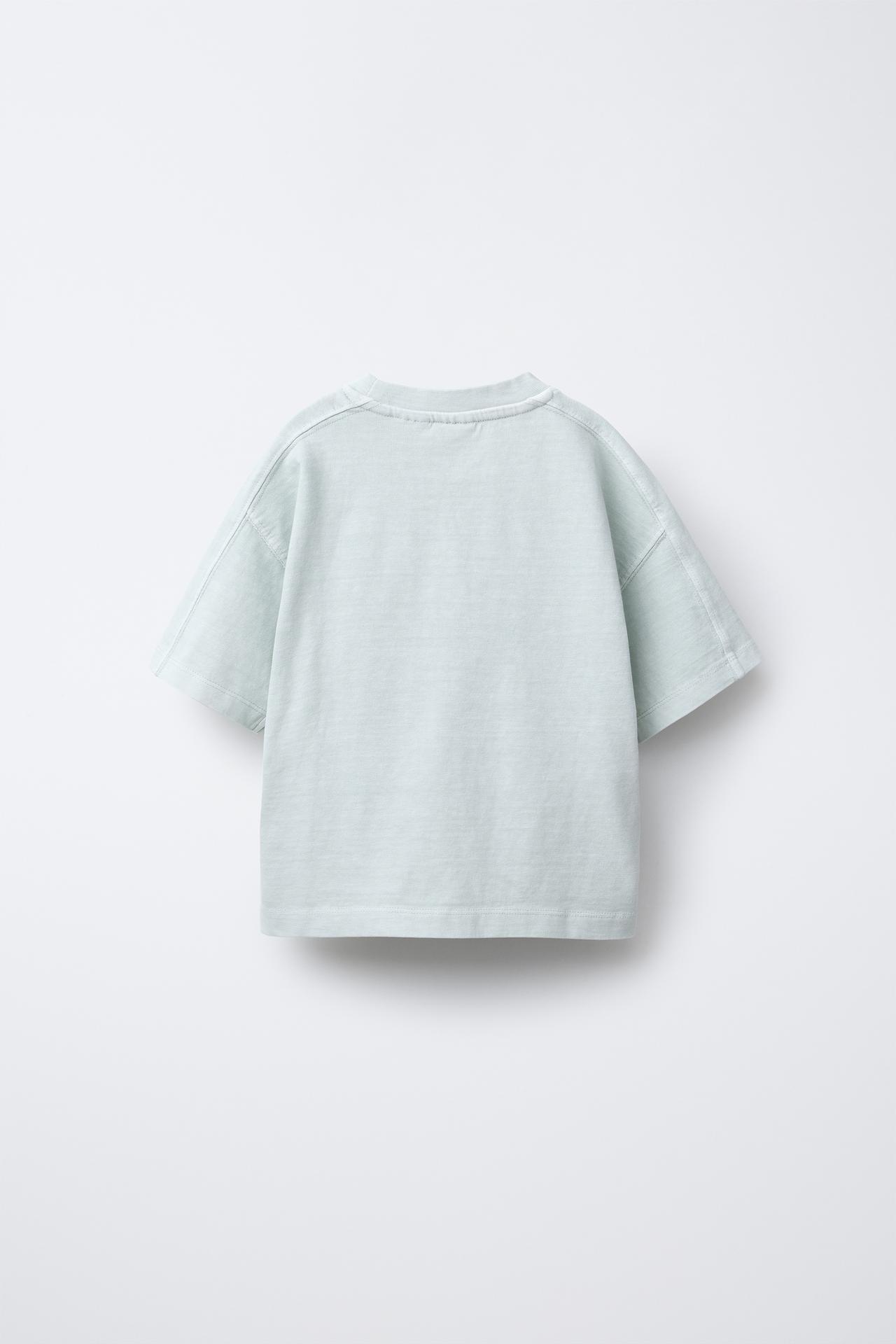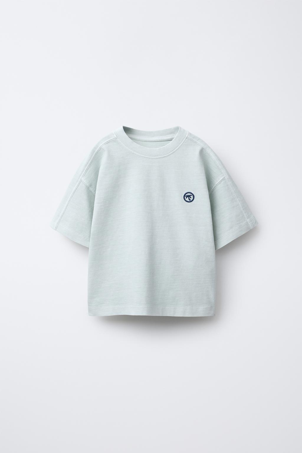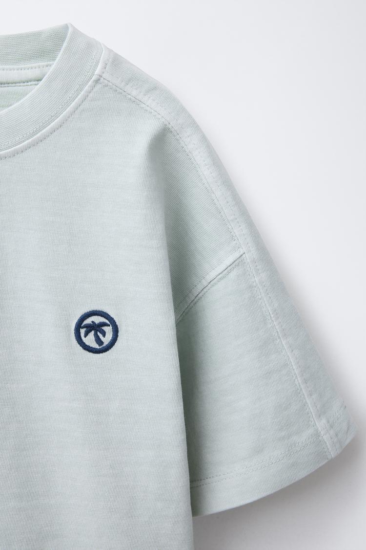 ZARA ФУТБОЛКА С ЭФФЕКТОМ ПОТЕРТОСТИ И ВЫШИВКОЙ «ПАЛЬМА», ГОЛУБОЙ