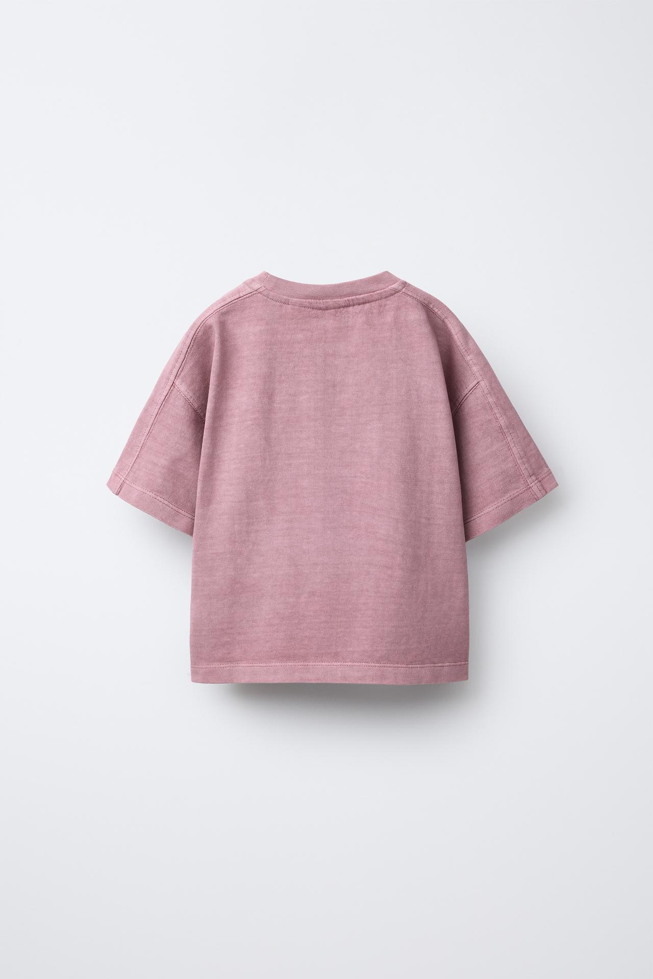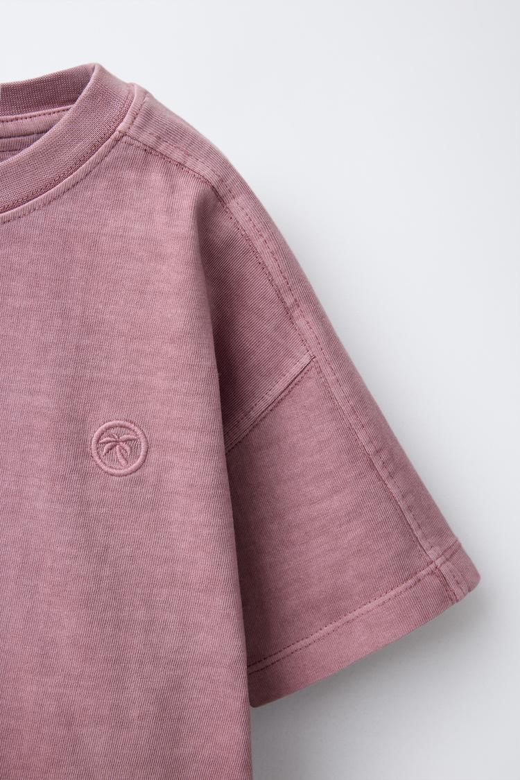 ZARA ФУТБОЛКА С ЭФФЕКТОМ ПОТЕРТОСТИ И ВЫШИВКОЙ «ПАЛЬМА», ЛИЛОВЫЙ