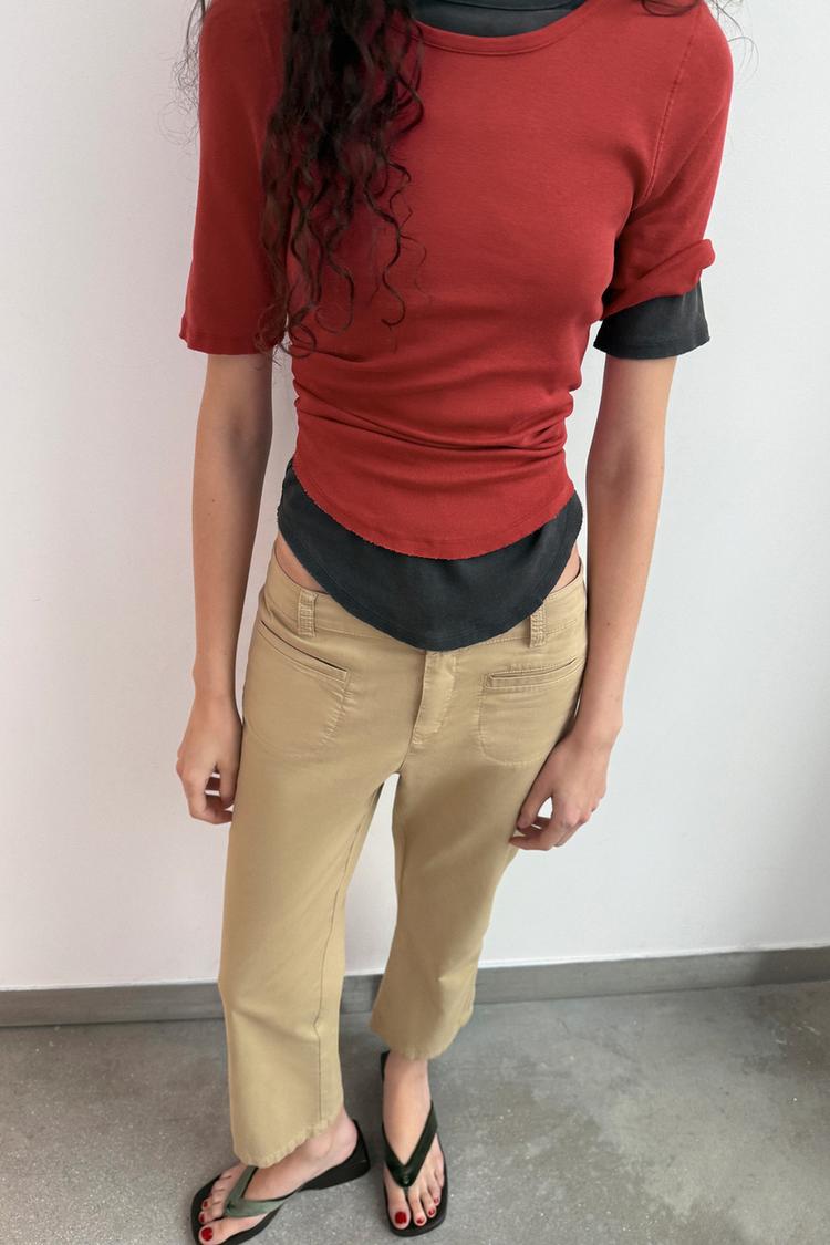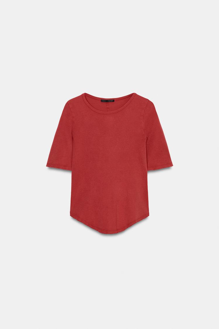 ZARA ФУТБОЛКА С ЭФФЕКТОМ ПОТЕРТОСТИ, КРАСНЫЙ