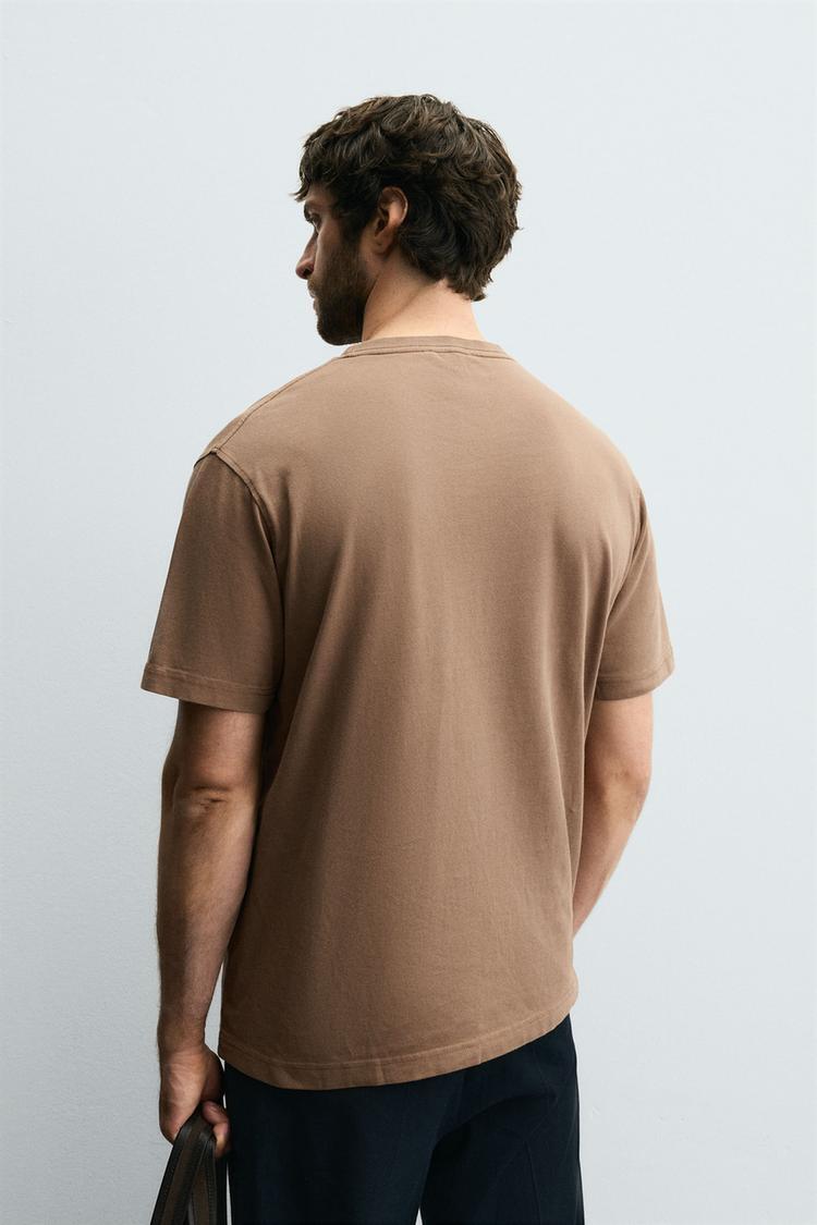 ZARA ФУТБОЛКА С ЭФФЕКТОМ ПОТЕРТОСТИ СТАНДАРТНОГО КРОЯ, СВЕТЛО-КОРИЧНЕВЫЙ