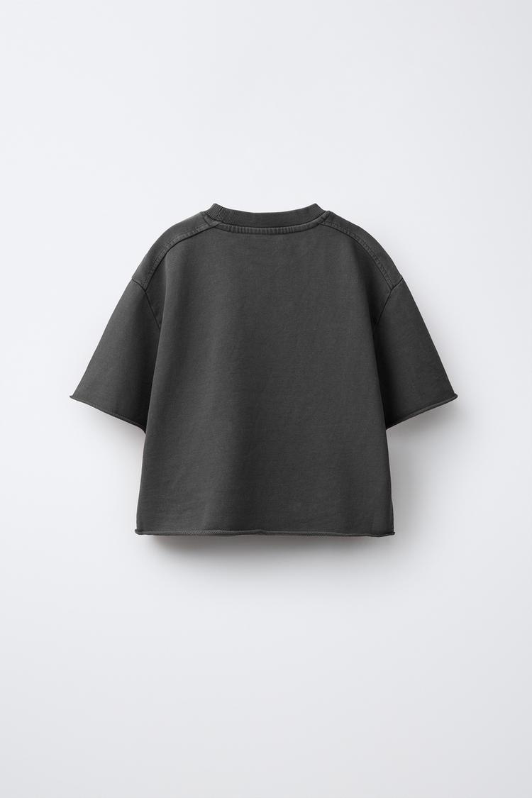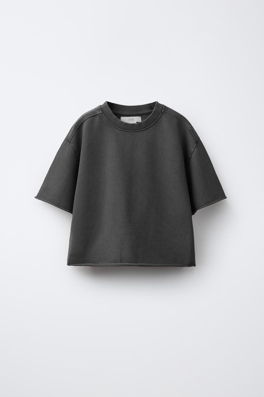 ZARA ФУТБОЛКА С ЭФФЕКТОМ ПОТЕРТОСТИ, ТЕМНО-СЕРЫЙ