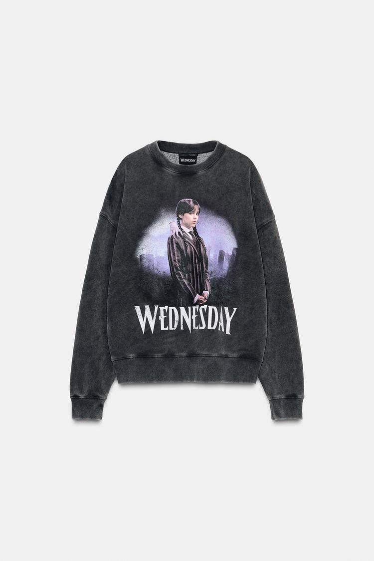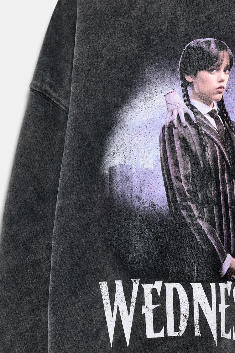 ZARA СВИТШОТ С ЭФФЕКТОМ ПОТЕРТОСТИ WEDNESDAY©, АНТРАЦИТОВО-СЕРЫЙ