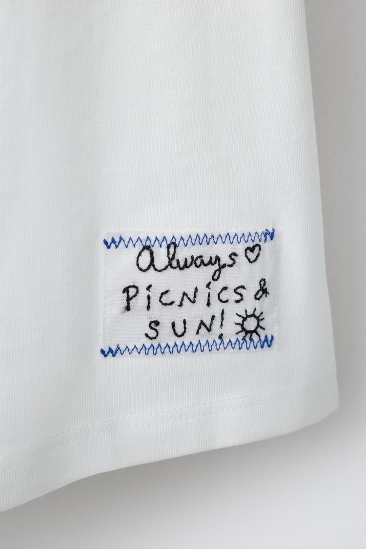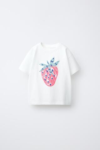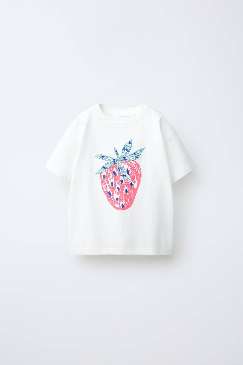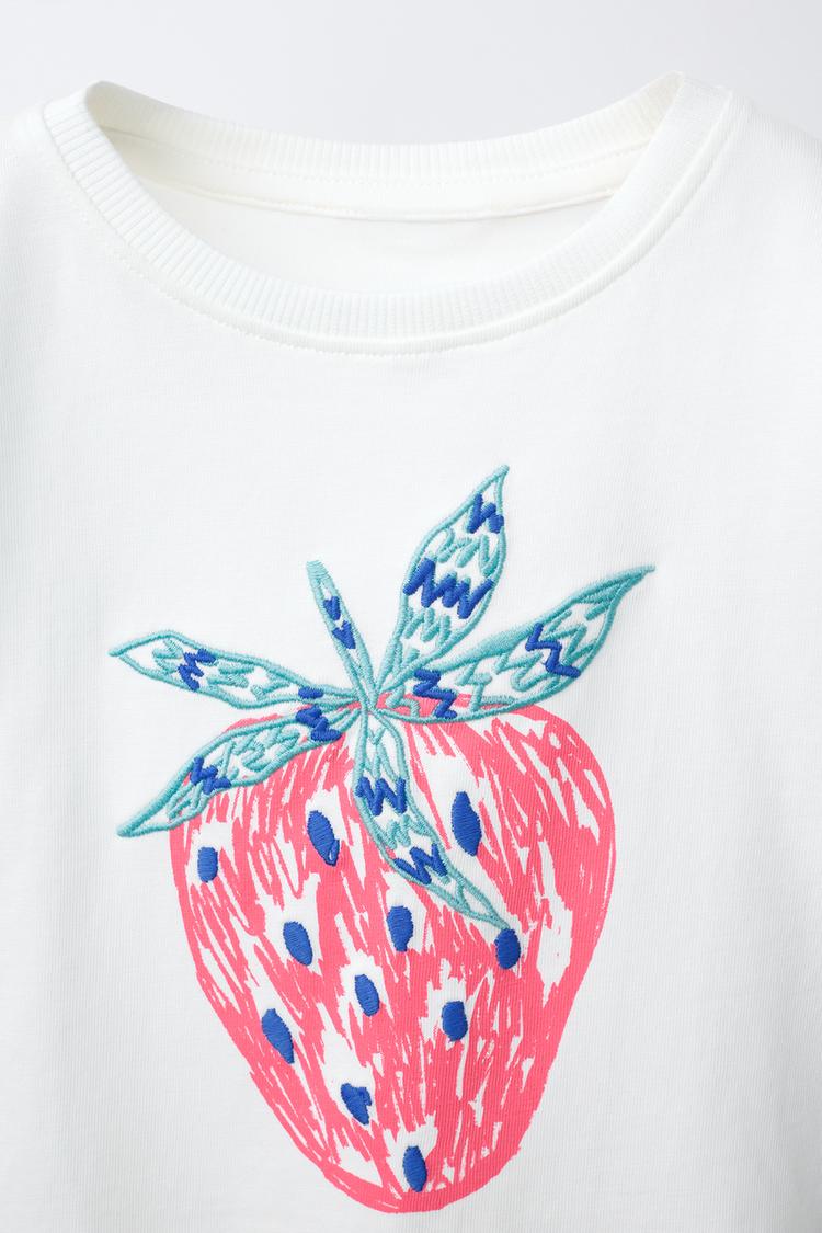 ZARA ФУТБОЛКА С ФРУКТОВЫМ ПРИНТОМ И ВЫШИВКОЙ, БЕЛЫЙ