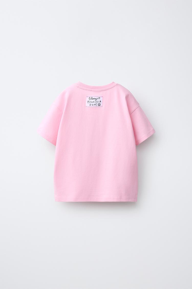 ZARA ФУТБОЛКА С ФРУКТОВЫМ ПРИНТОМ И ВЫШИВКОЙ, РОЗОВЫЙ