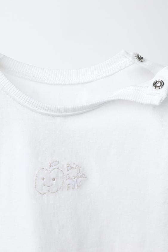 ZARA ФУТБОЛКА С ГЛАДКОЙ ВЫШИВКОЙ, БЕЛЫЙ