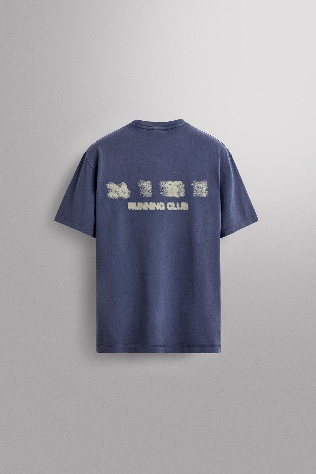 ZARA ФУТБОЛКА С ГРАФИЧЕСКИМ ПРИНТОМ, ЛИНЯЛЫЙ СИНИЙ