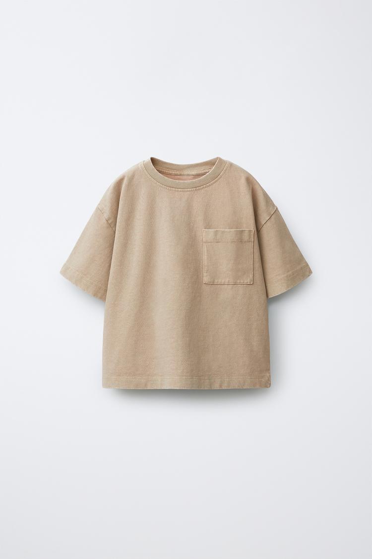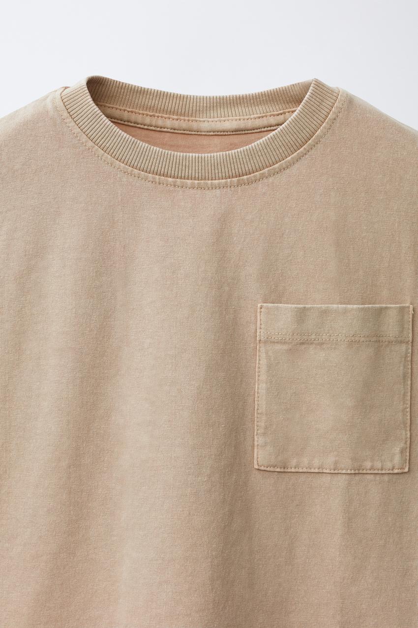 ZARA ФУТБОЛКА С КАРМАНОМ, СВЕТЛО-КОРИЧНЕВЫЙ