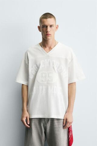 ZARA ФУТБОЛКА С КОМБИНИРОВАННЫМИ ТЕКСТАМИ, БЕЛЫЙ