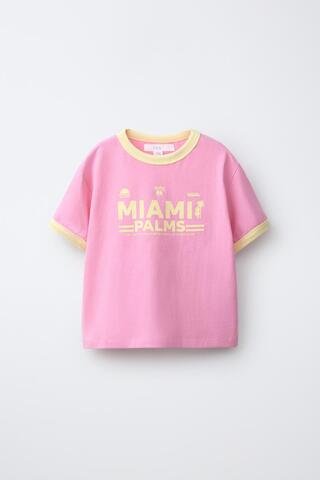 ZARA ФУТБОЛКА С КОНТРАСТНОЙ НАДПИСЬЮ, РОЗОВЫЙ