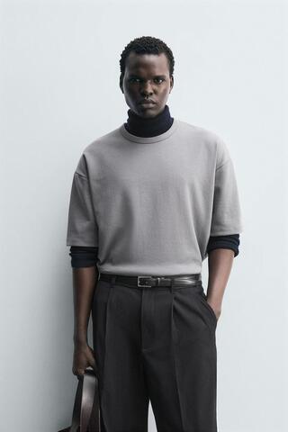 ZARA ФУТБОЛКА С КОНТРАСТНОЙ НАШИВКОЙ, СЕРЫЙ