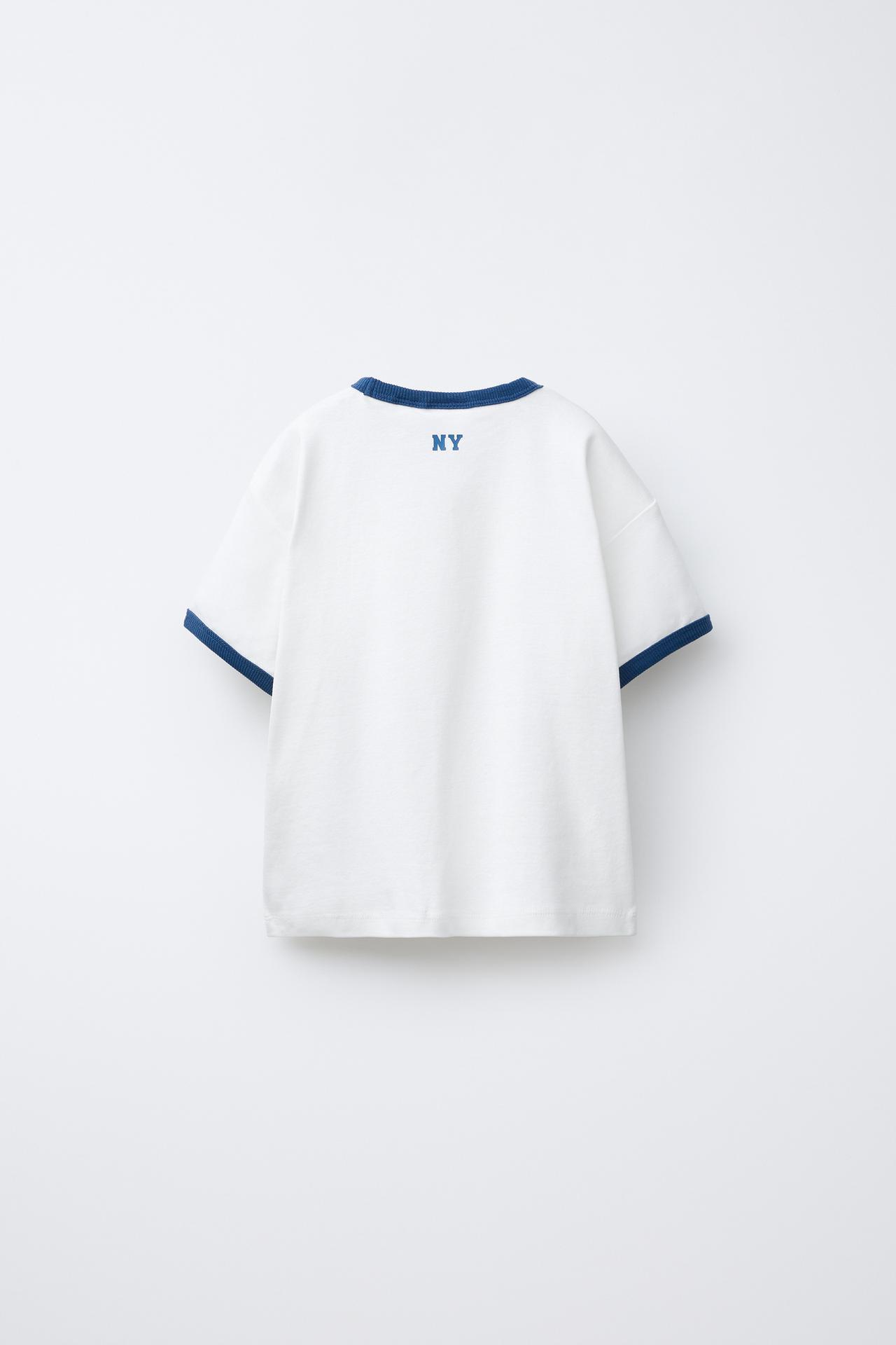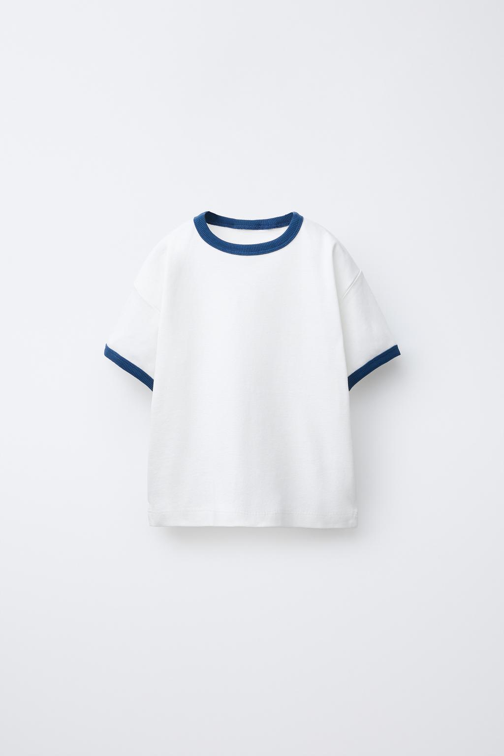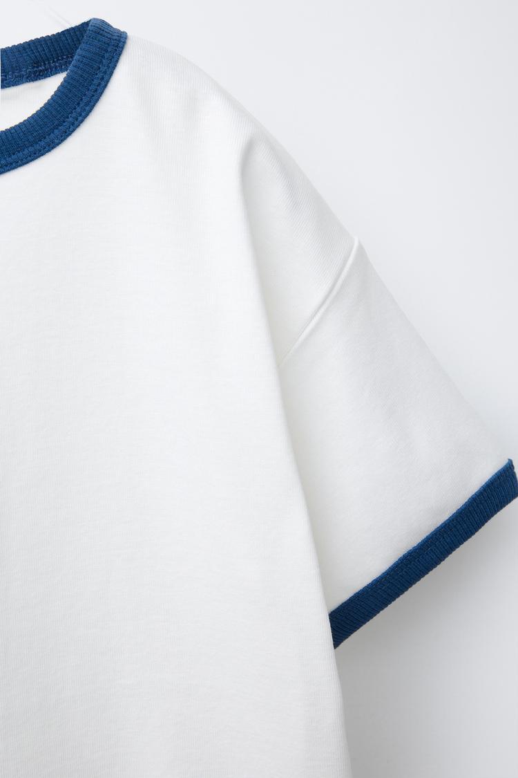 ZARA ФУТБОЛКА С КОНТРАСТНОЙ ОКАНТОВКОЙ, СИНИЙ