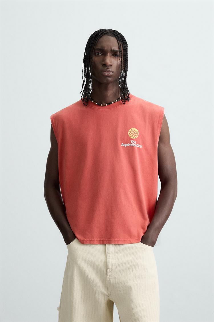 ZARA ФУТБОЛКА С КОНТРАСТНЫМ ПРИНТОМ, КРАСНЫЙ