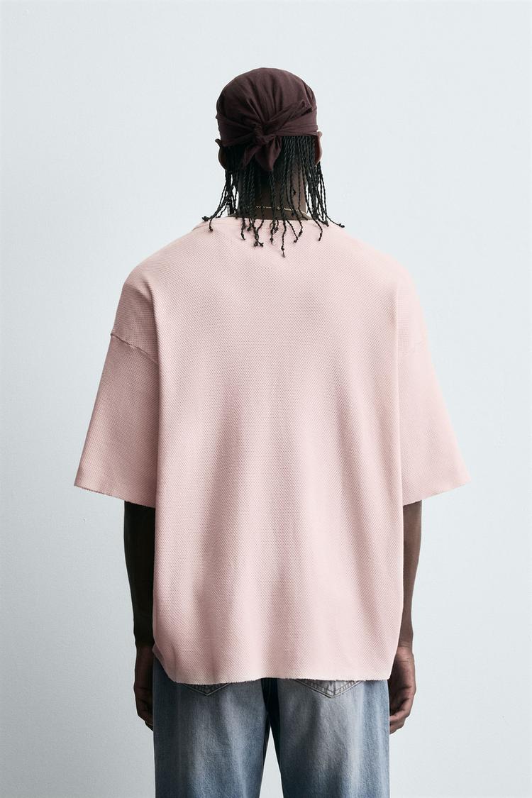 ZARA ФУТБОЛКА С КОНТРАСТНЫМ ПРИНТОМ, ЦВЕТ РОЗОВОГО ДЕРЕВА