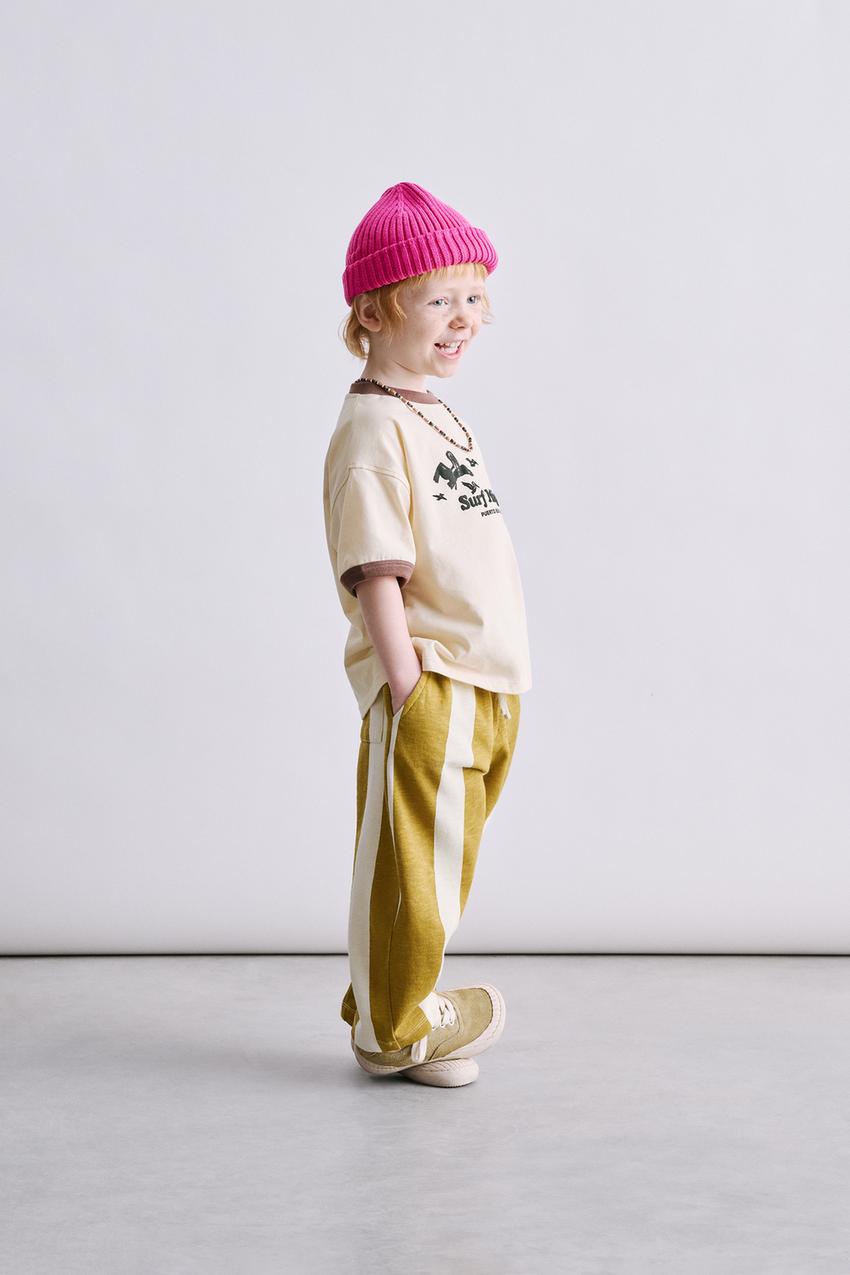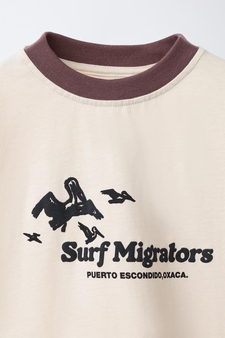 ZARA ФУТБОЛКА С КОНТРАСТНЫМ ТЕКСТОВЫМ ПРИНТОМ, ЦВЕТ СЛОНОВОЙ КОСТИ