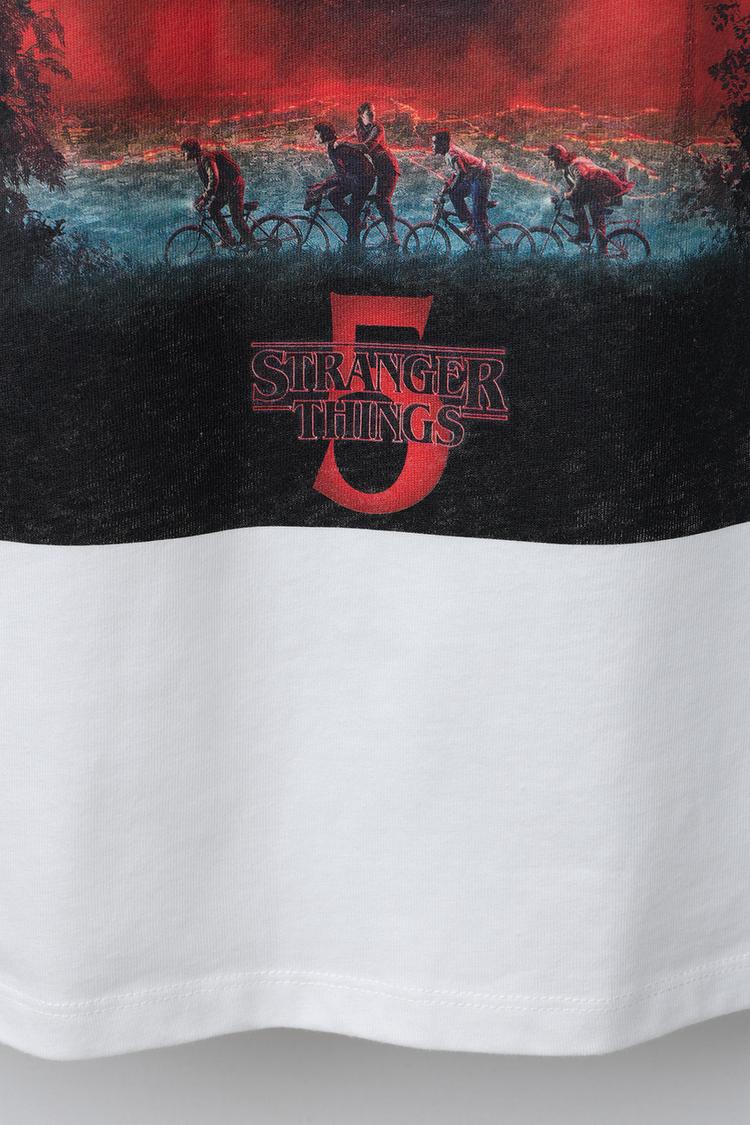 Футболка с круглым вырезом контрастного цвета и короткими рукавами. Принт STRANGER THINGS © NETFLIX спереди и сзади.