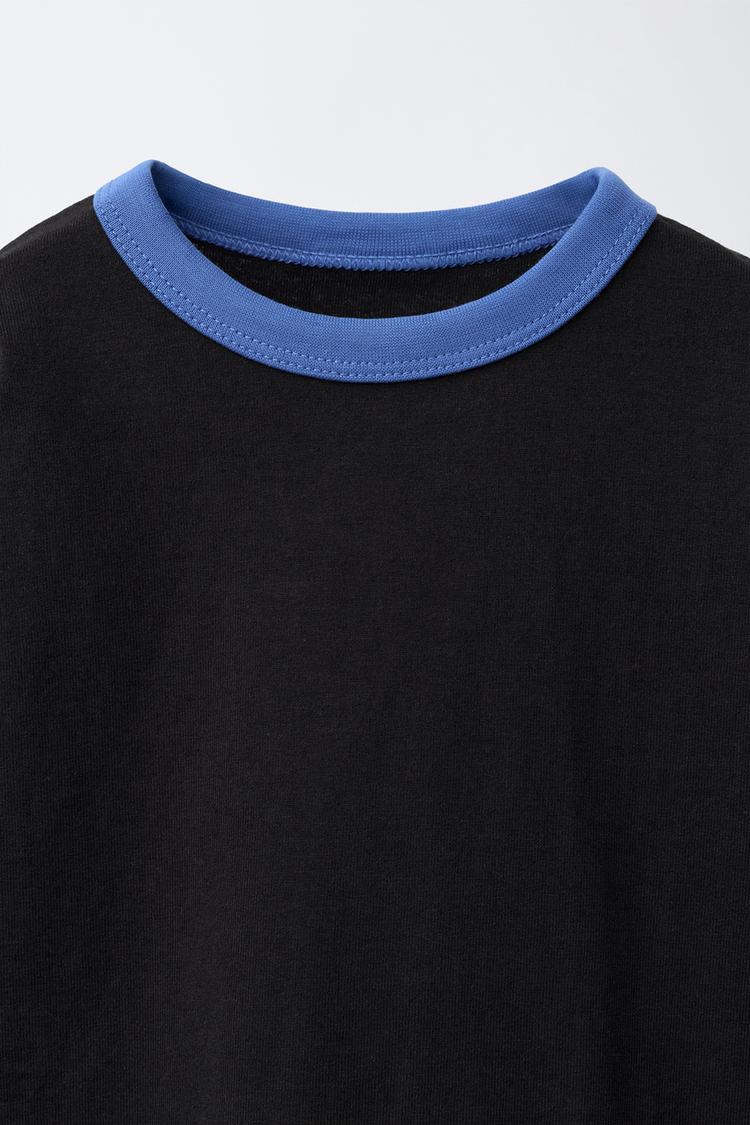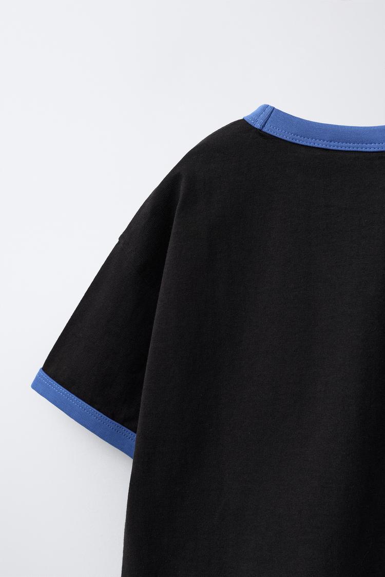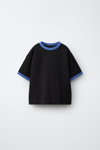 ZARA ФУТБОЛКА С КОНТРАСТНЫМИ ДЕТАЛЯМИ, ЧЕРНЫЙ