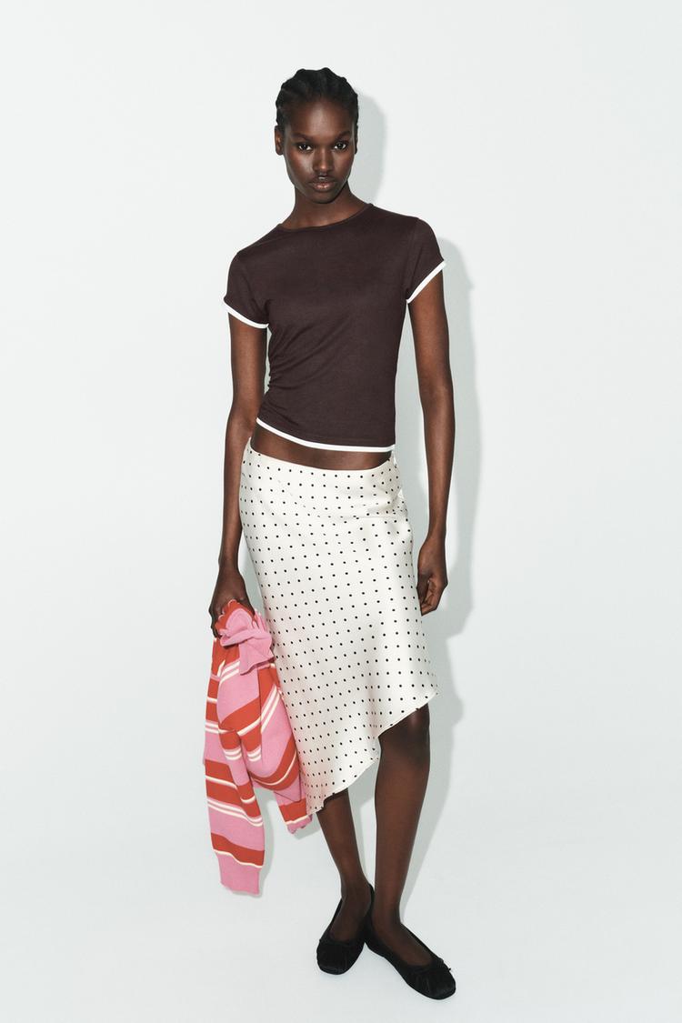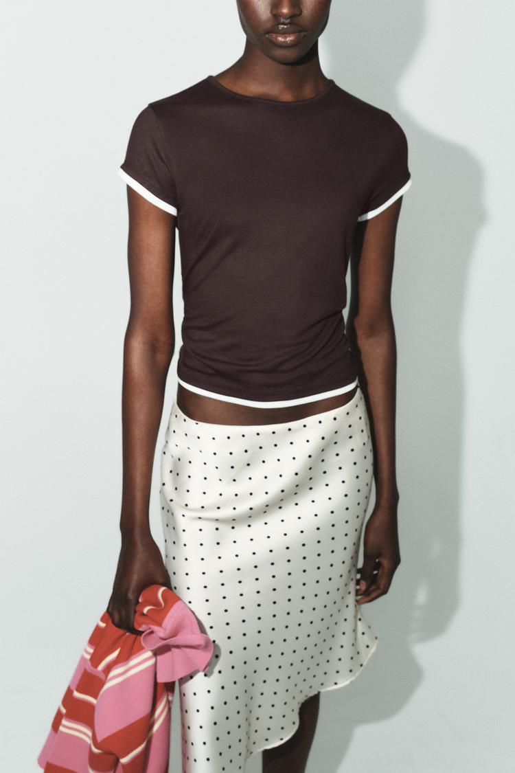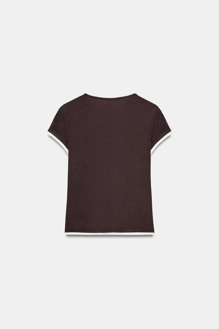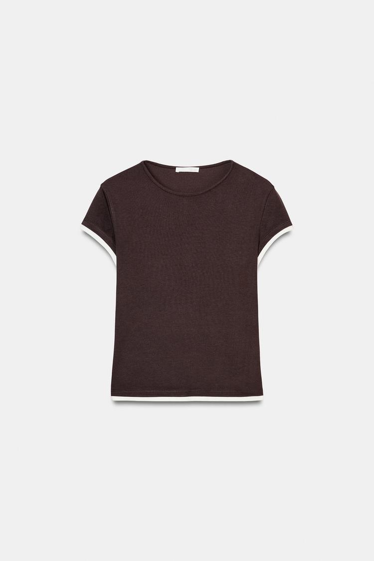 ZARA ФУТБОЛКА С КОНТРАСТНЫМИ ДЕТАЛЯМИ, ШОКОЛАДНЫЙ