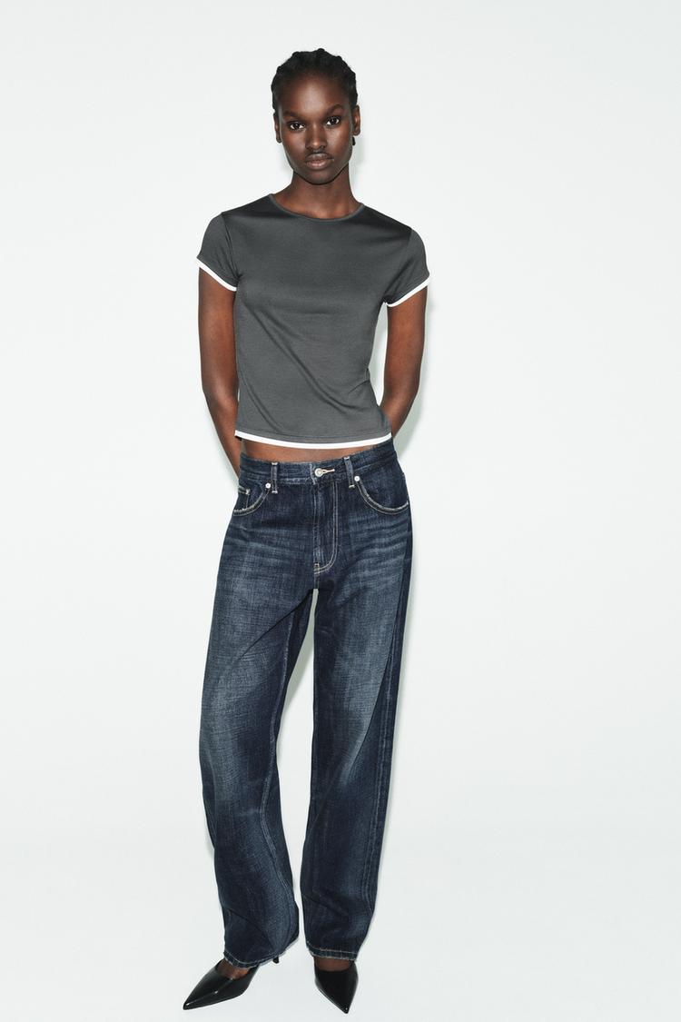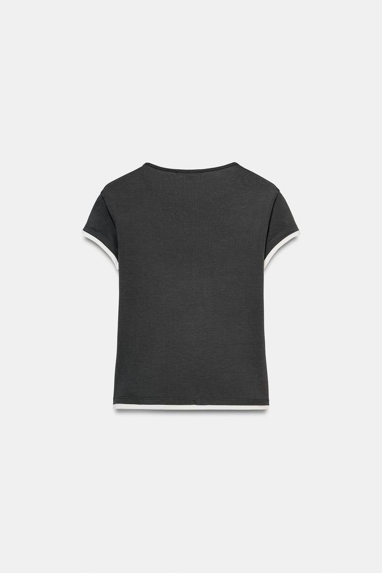ZARA ФУТБОЛКА С КОНТРАСТНЫМИ ДЕТАЛЯМИ, СВИНЦОВЫЙ