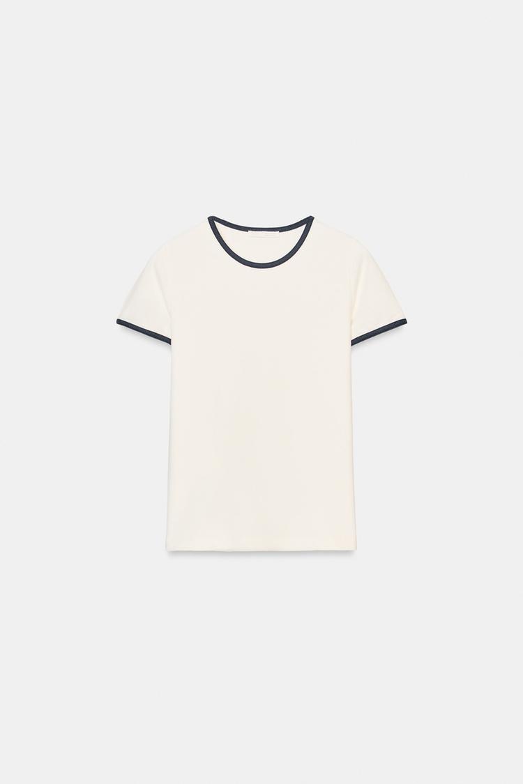 ZARA ФУТБОЛКА С КОНТРАСТНЫМИ ДЕТАЛЯМИ, ЖЕЛТОВАТО-БЕЛЫЙ