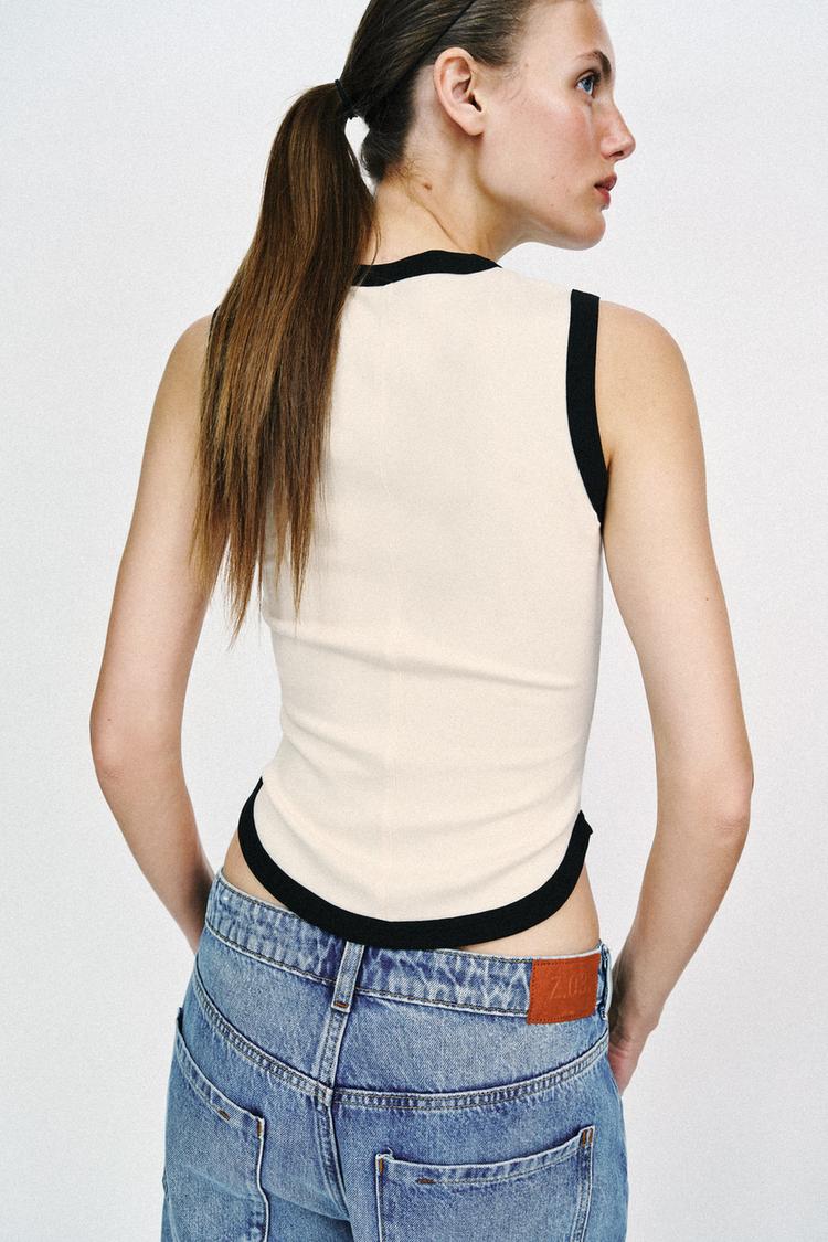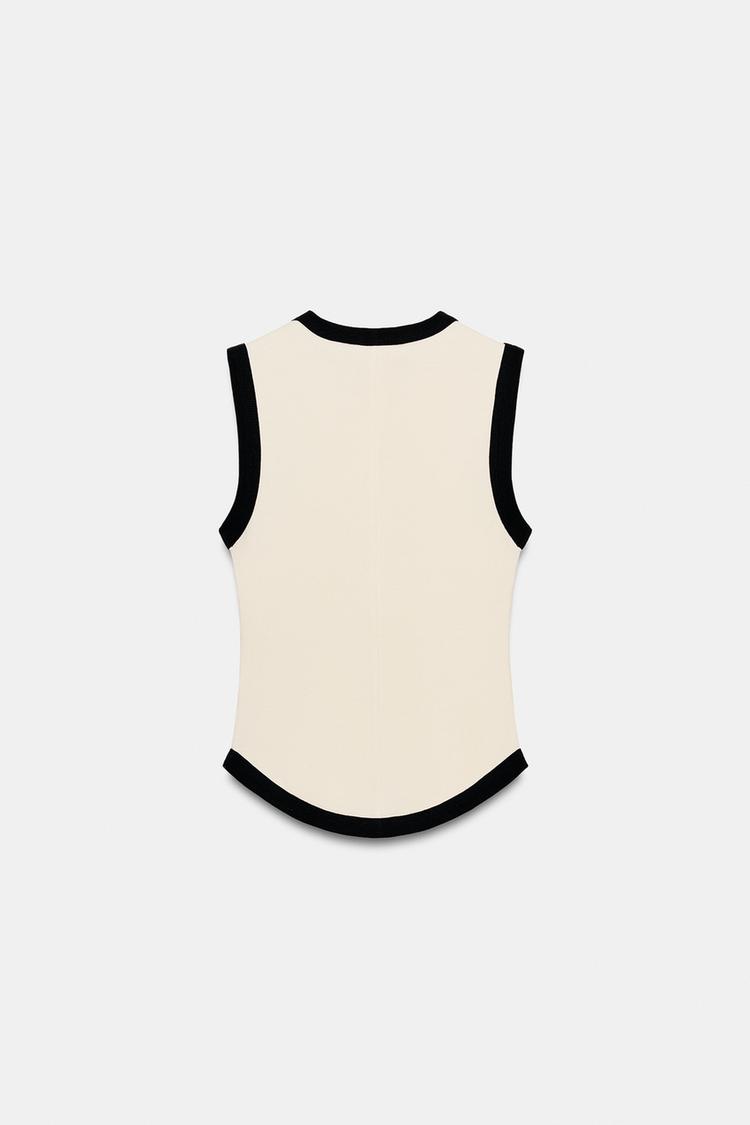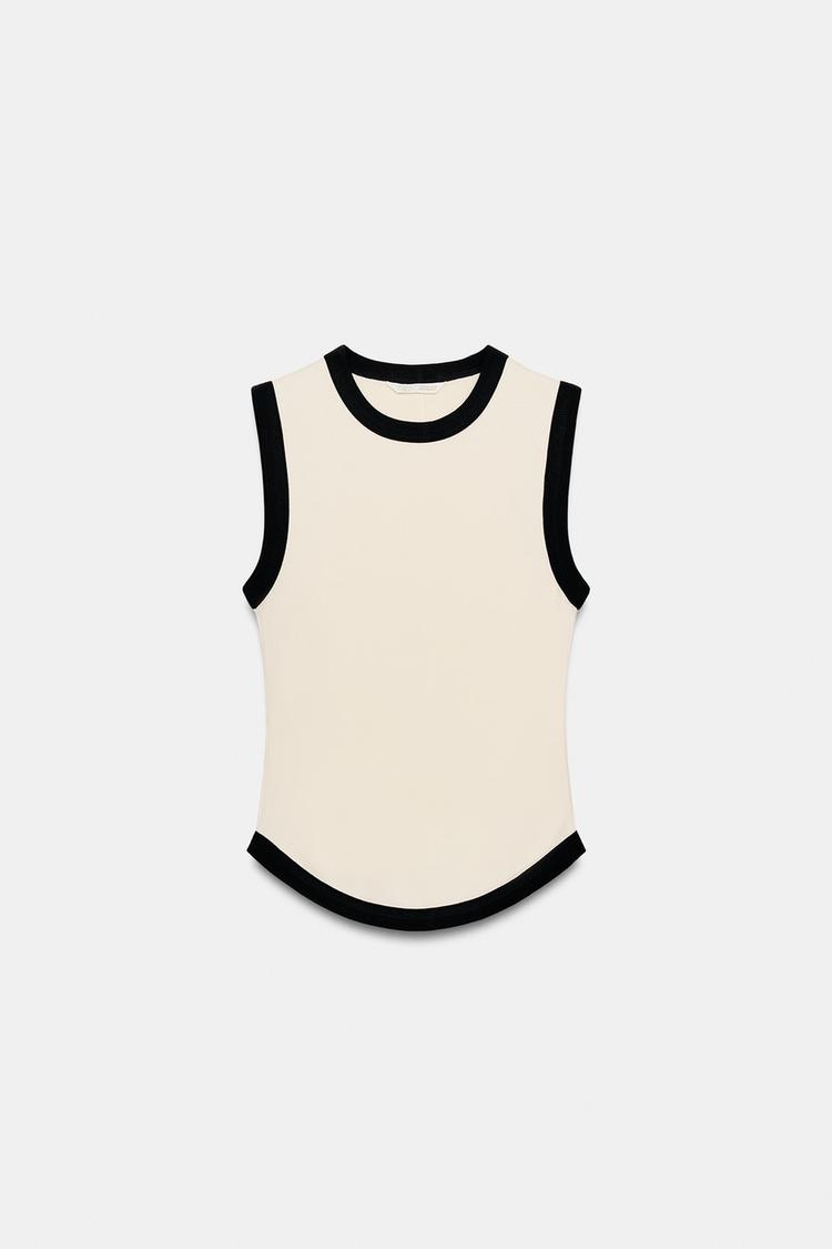 ZARA ФУТБОЛКА С КОНТРАСТНЫМИ ПОЛОСАМИ, ЖЕЛТОВАТО-БЕЛЫЙ