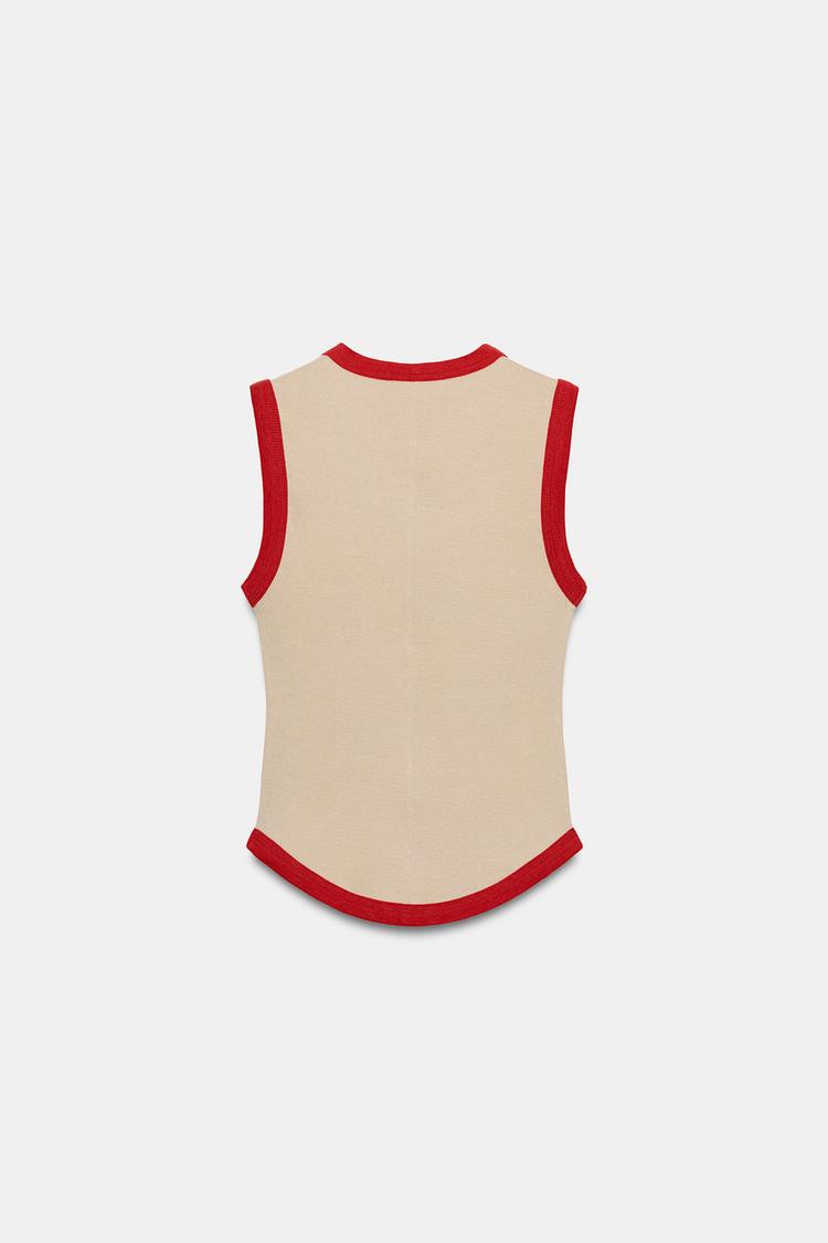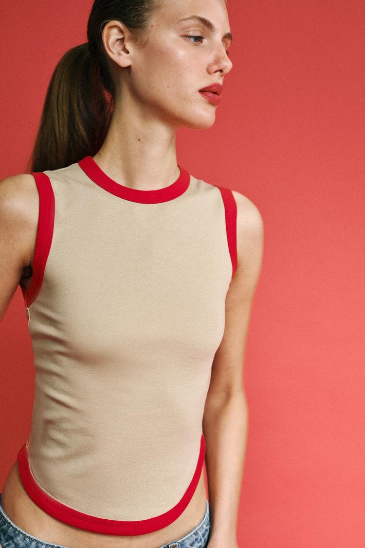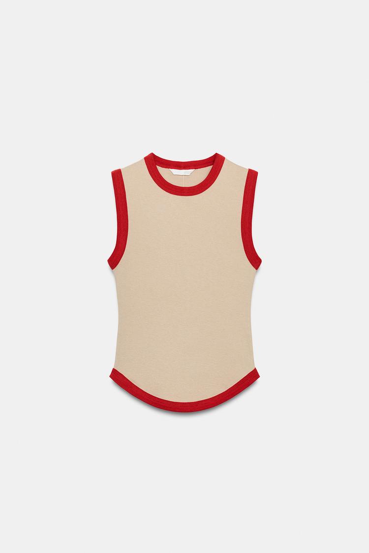 ZARA ФУТБОЛКА С КОНТРАСТНЫМИ ПОЛОСАМИ,БЕЖЕВЫЙ