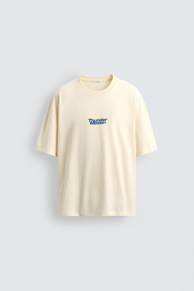 ZARA ФУТБОЛКА С КОНТРАСТНЫМИ ПРИНТАМИ, СВЕТЛО-ЖЕЛТЫЙ