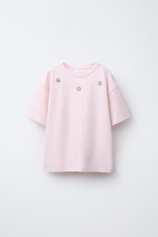 ZARA ФУТБОЛКА С КОНТРАСТНЫМИ ЦВЕТКАМИ, РОЗОВЫЙ
