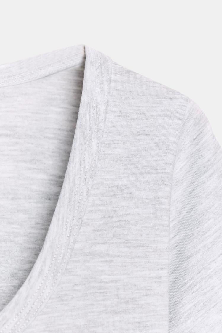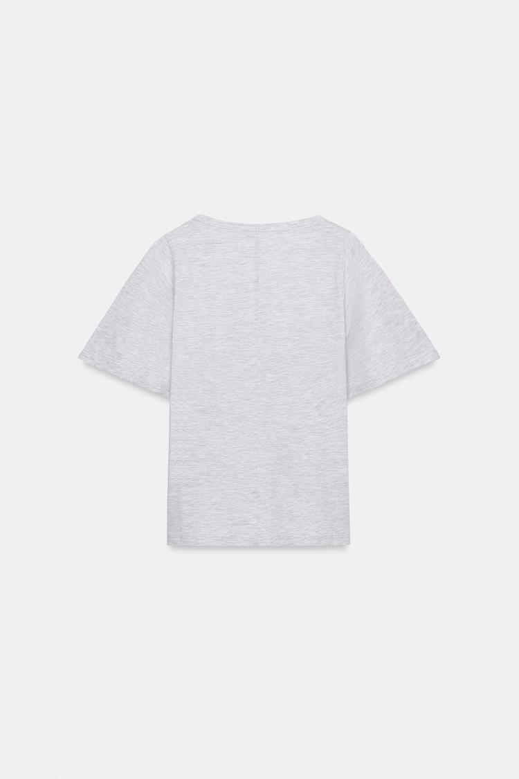 ZARA ФУТБОЛКА С КОРОТКИМ РУКАВОМ И ШИРОКИМ ВЫРЕЗОМ, СЕРЫЙ МЕЛАНЖ