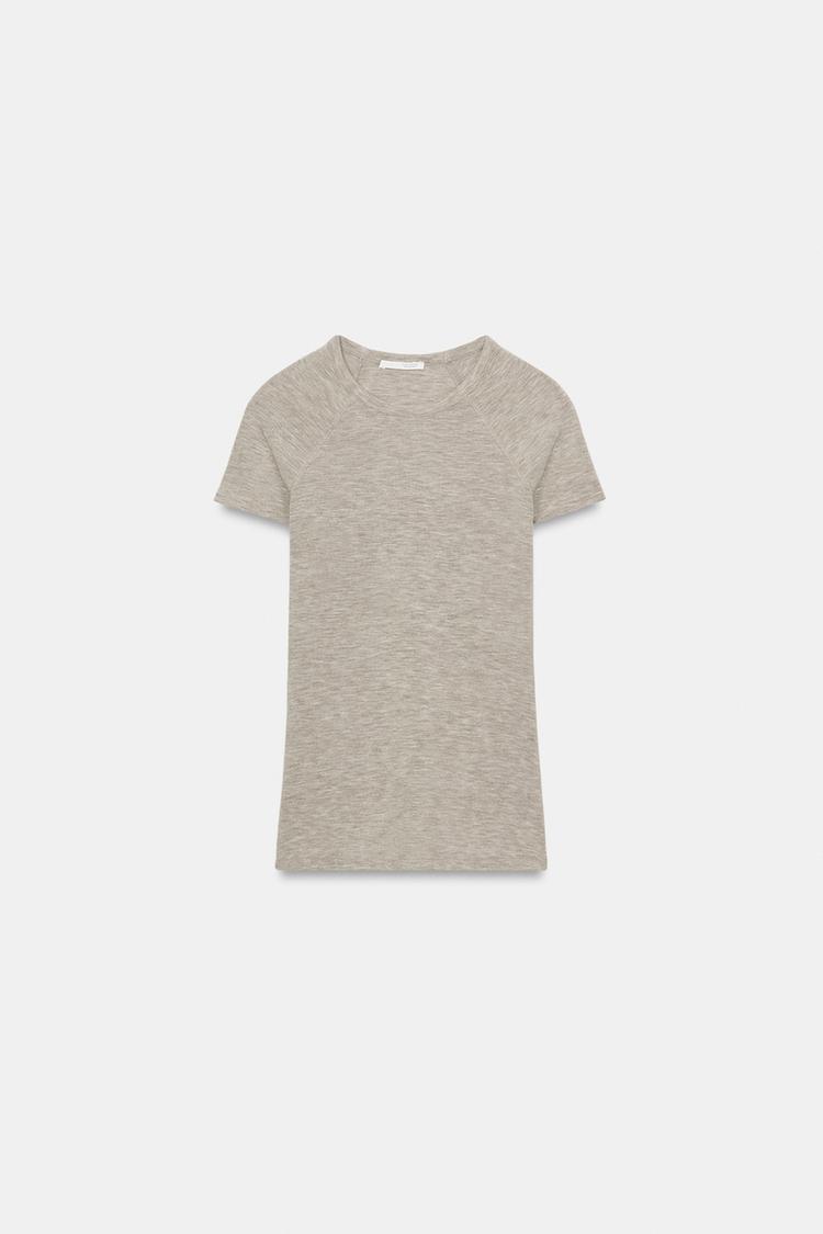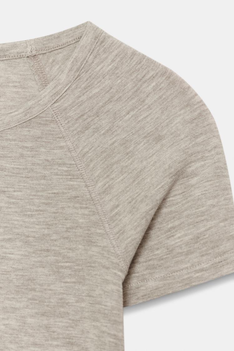 ZARA ФУТБОЛКА С КОРОТКИМИ РУКАВАМИ РЕГЛАН, БЕЖЕВЫЙ МЕЛАНЖ