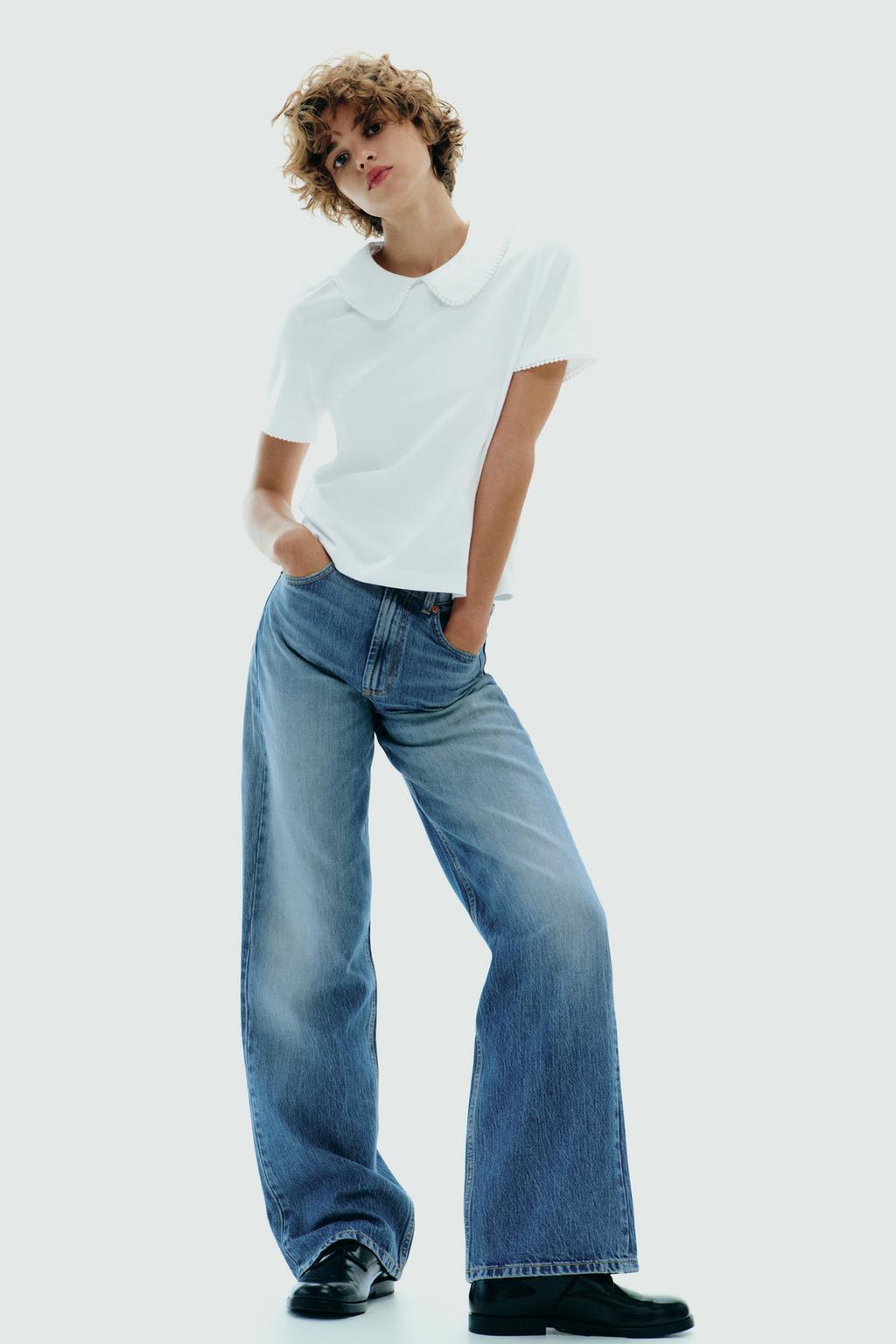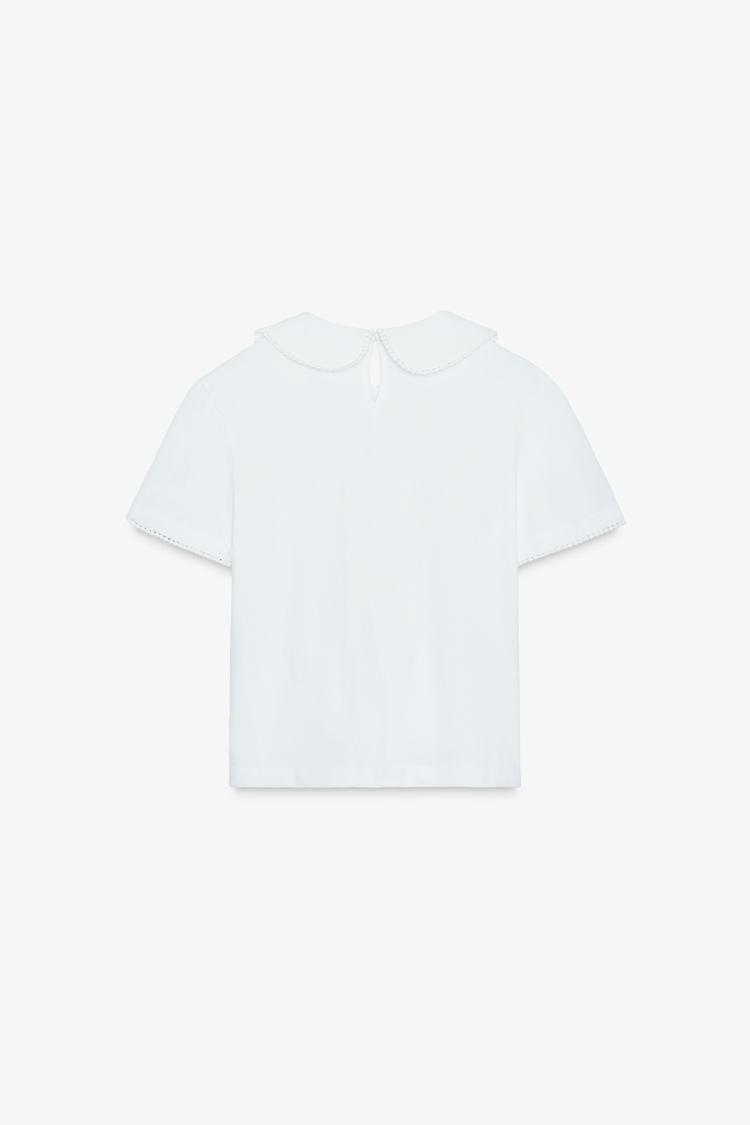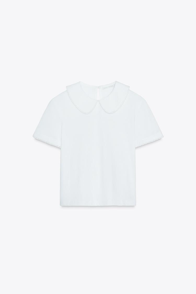 ZARA ФУТБОЛКА С КРУГЛЫМ ВОРОТНИКОМ, БЕЛЫЙ