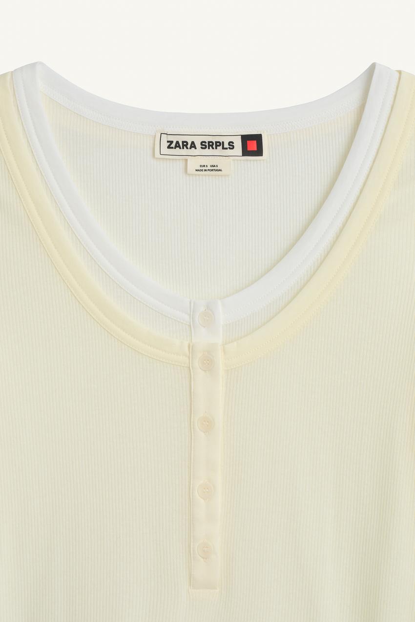 ZARA ФУТБОЛКА С КРУГЛЫМ ВЫРЕЗОМ, ЭКРЮ