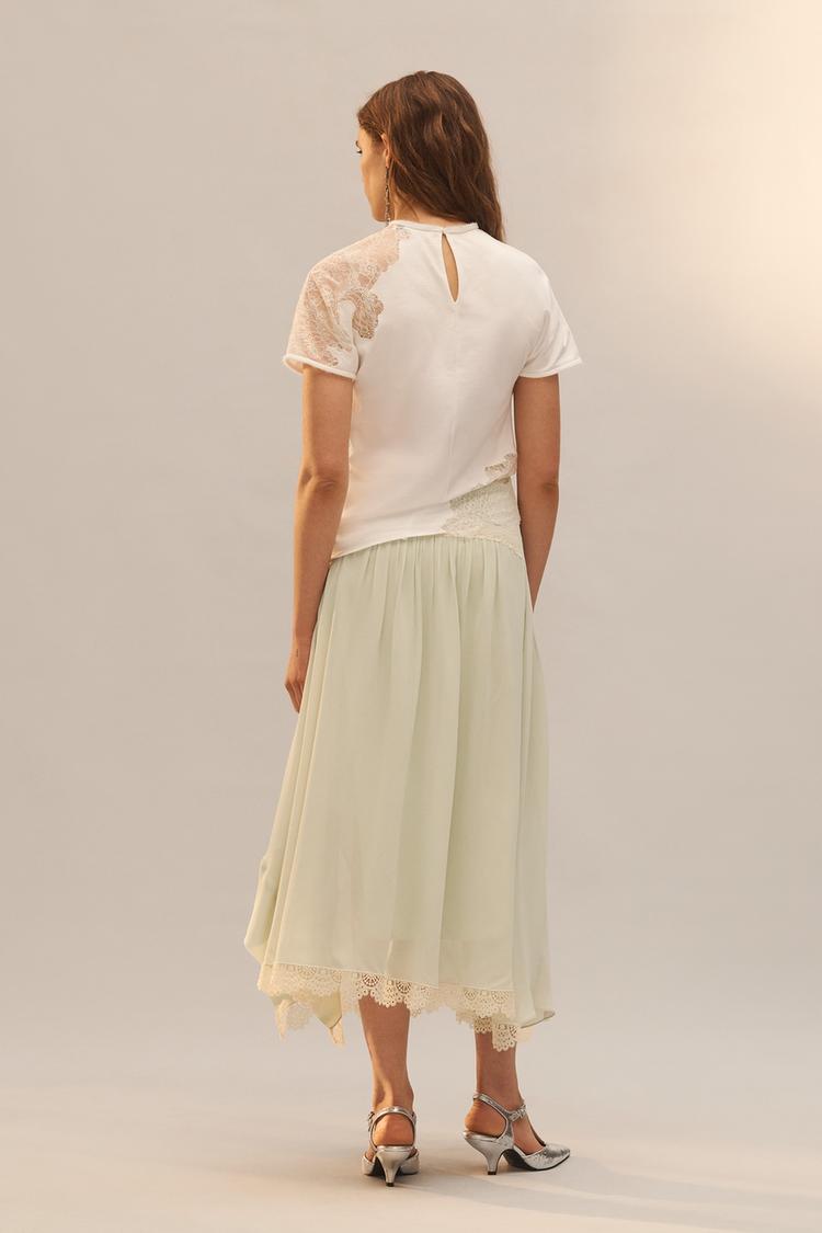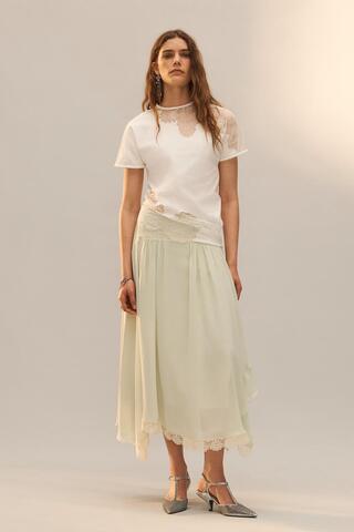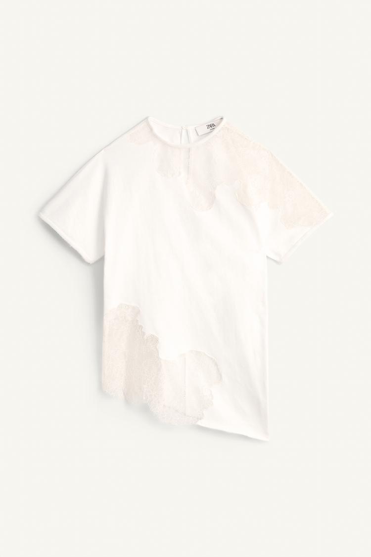 ZARA ФУТБОЛКА С КРУЖЕВНОЙ ОТДЕЛКОЙ - LIMITED EDITION, ЭКРЮ