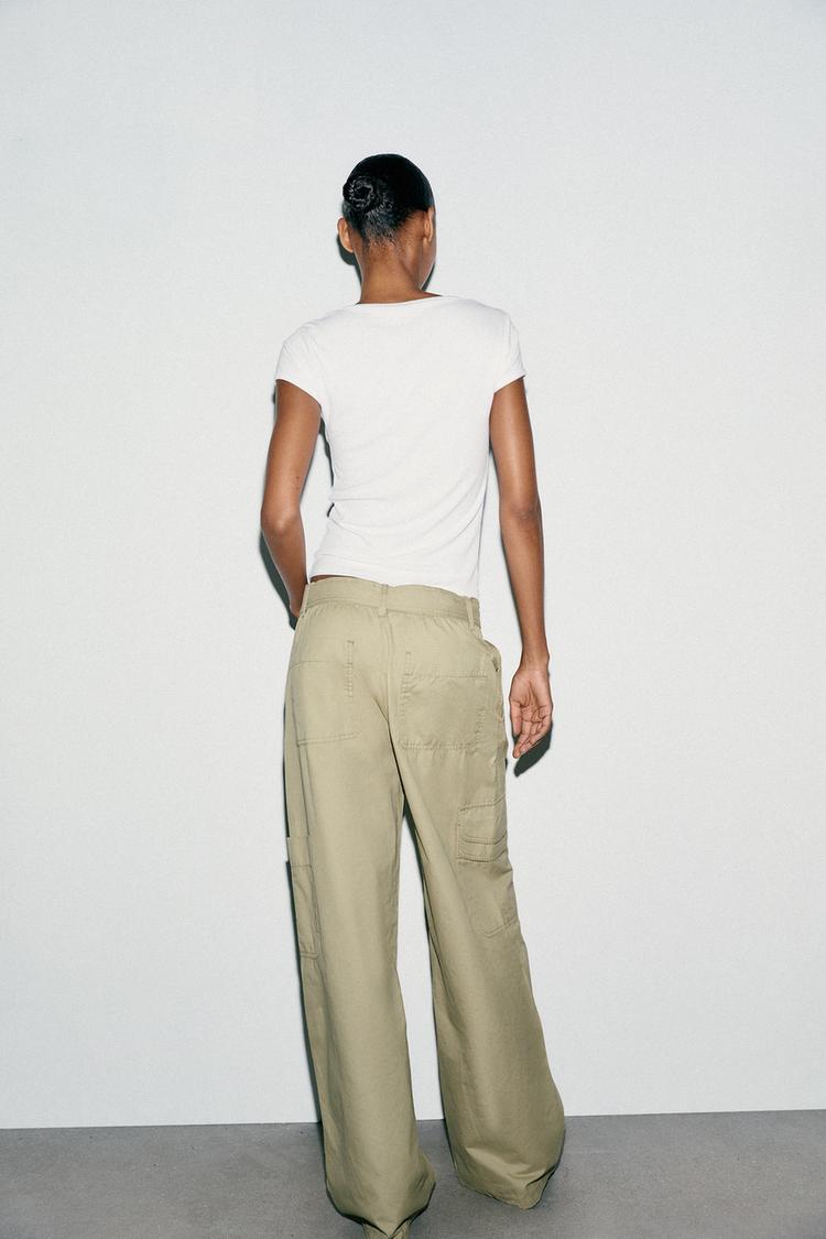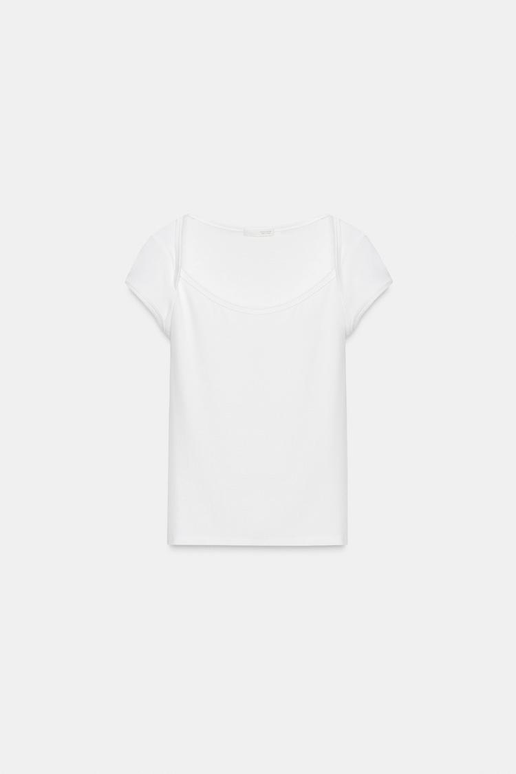 ZARA ФУТБОЛКА С КВАДРАТНЫМ ВЫРЕЗОМ, БЕЛЫЙ