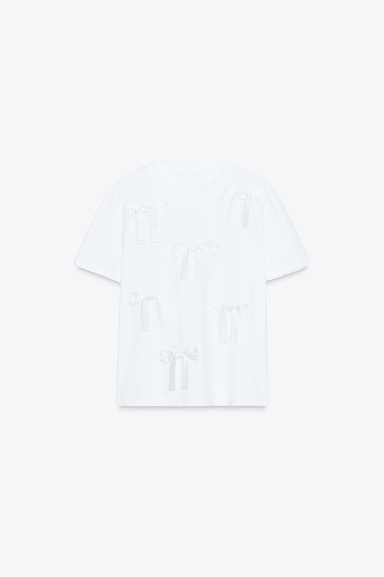 ZARA ФУТБОЛКА С ЛЕНТАМИ, БЕЛЫЙ
