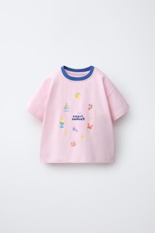 ZARA ФУТБОЛКА С ЛЕТНИМИ МОТИВАМИ, РОЗОВЫЙ