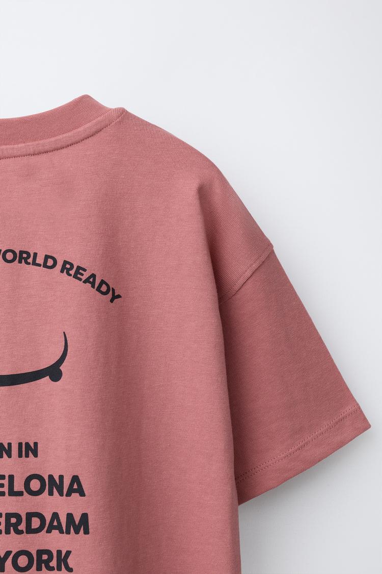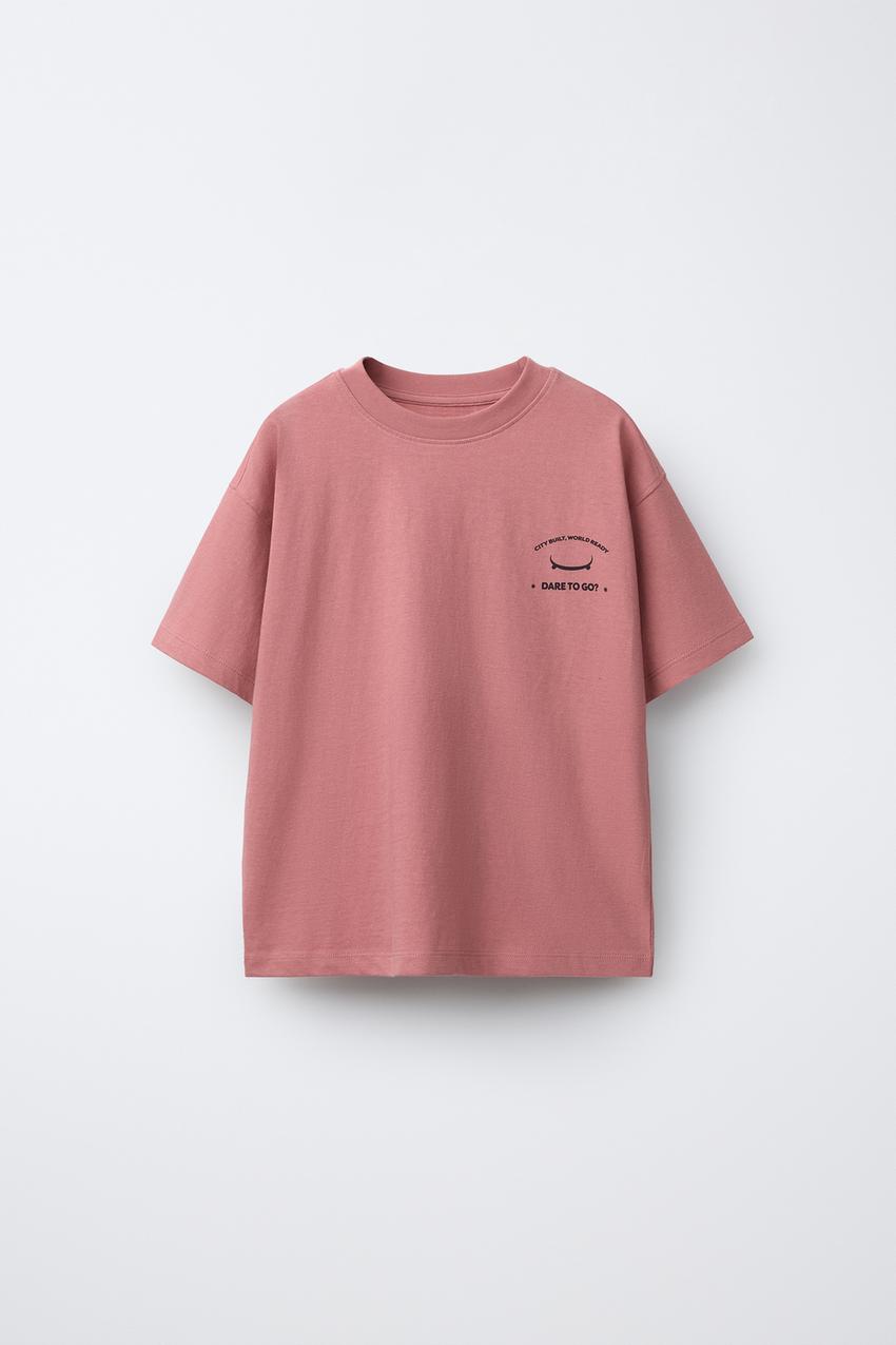 ZARA ФУТБОЛКА С ЛОГОТИПОМ, ПЫЛЬНЫЙ РОЗОВЫЙ