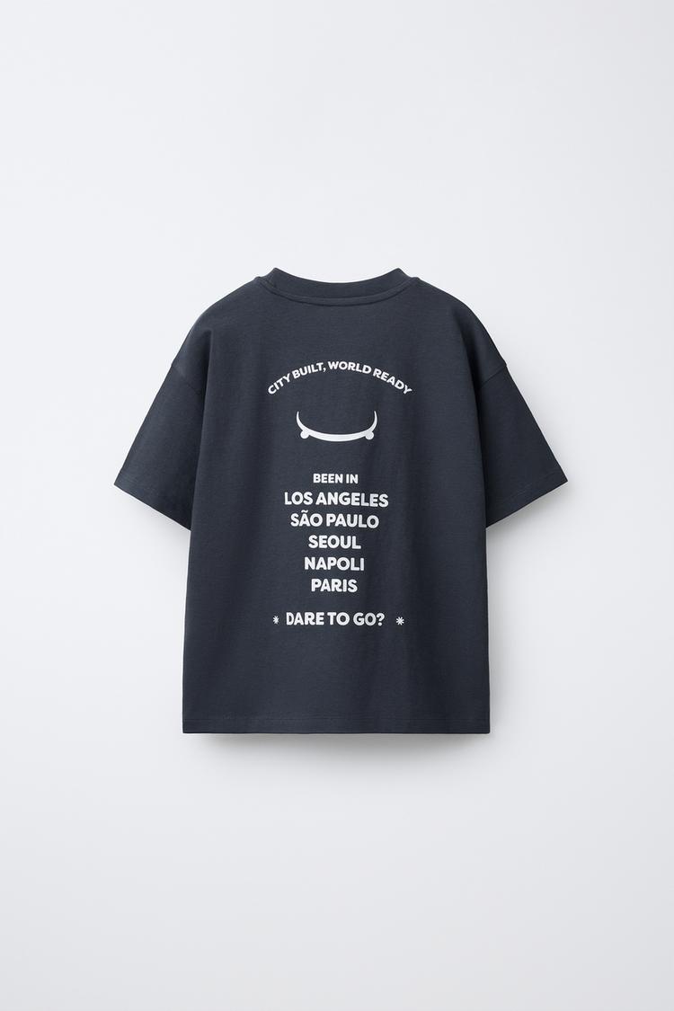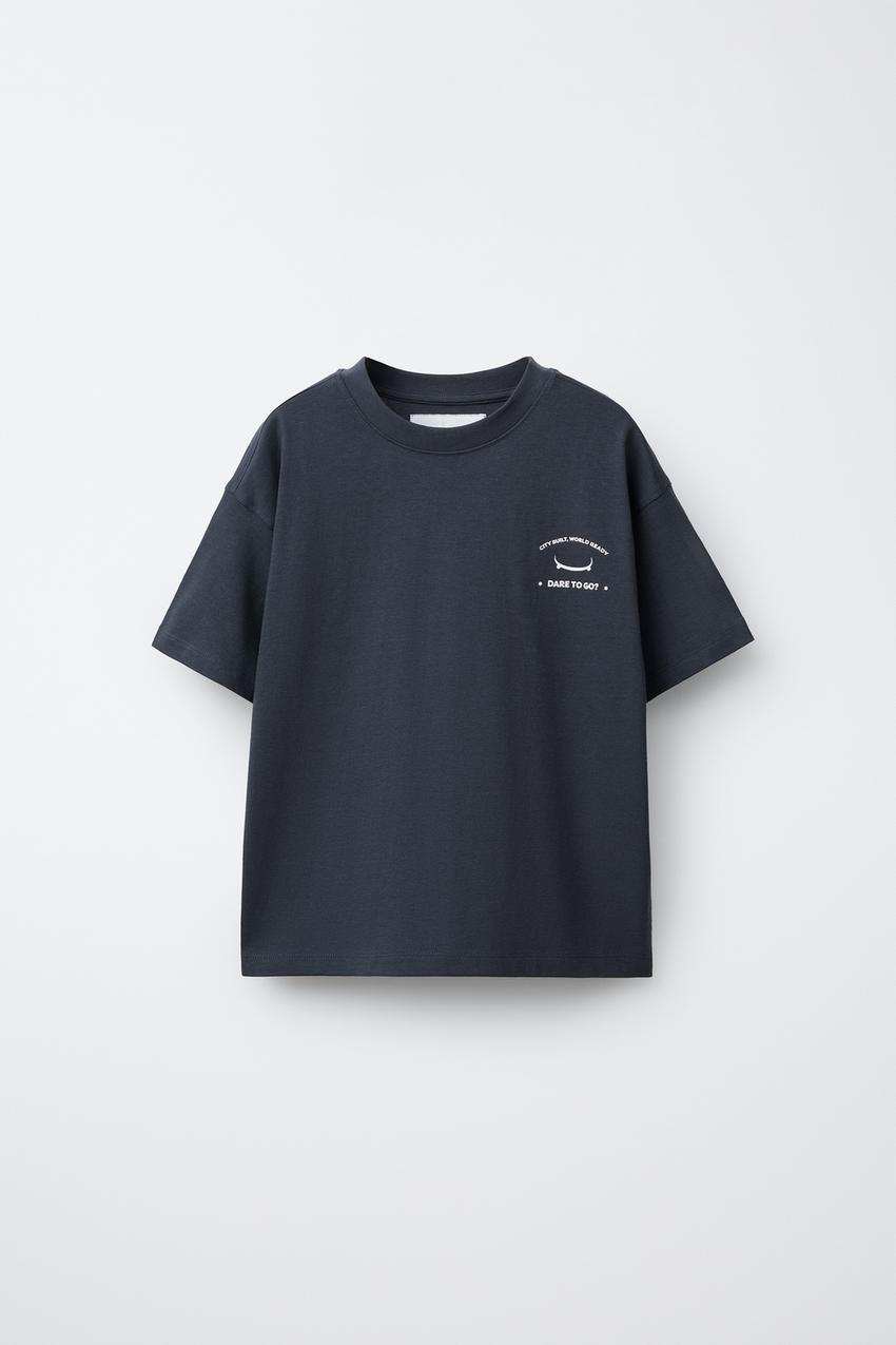 ZARA ФУТБОЛКА С ЛОГОТИПОМ, СЕРЫЙ/СИНИЙ