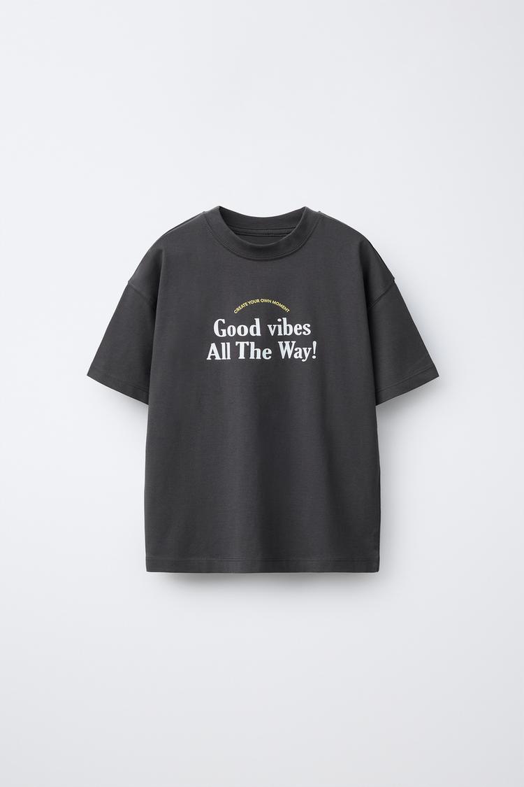 ZARA ФУТБОЛКА С НАДПИСЬЮ, АНТРАЦИТОВО-СЕРЫЙ