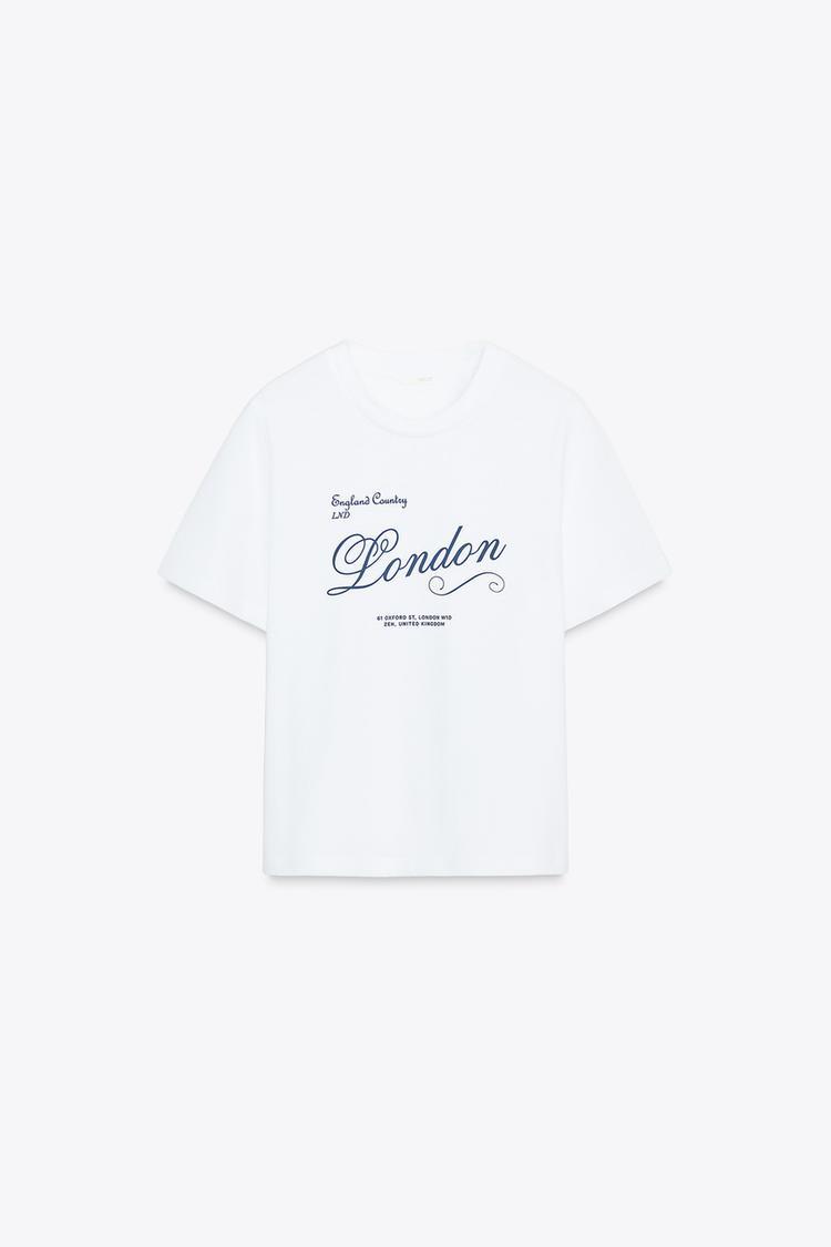 ZARA ФУТБОЛКА С НАДПИСЬЮ, БЕЛЫЙ