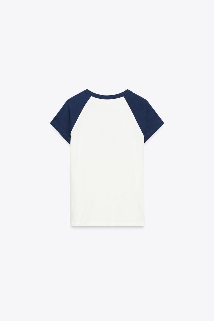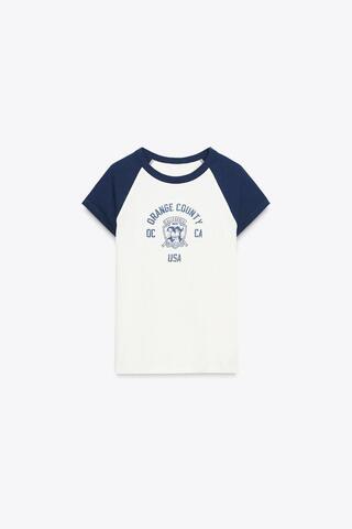 ZARA ФУТБОЛКА С НАДПИСЬЮ, БЕЛЫЙ/МОРСКОЙ СИНИЙ