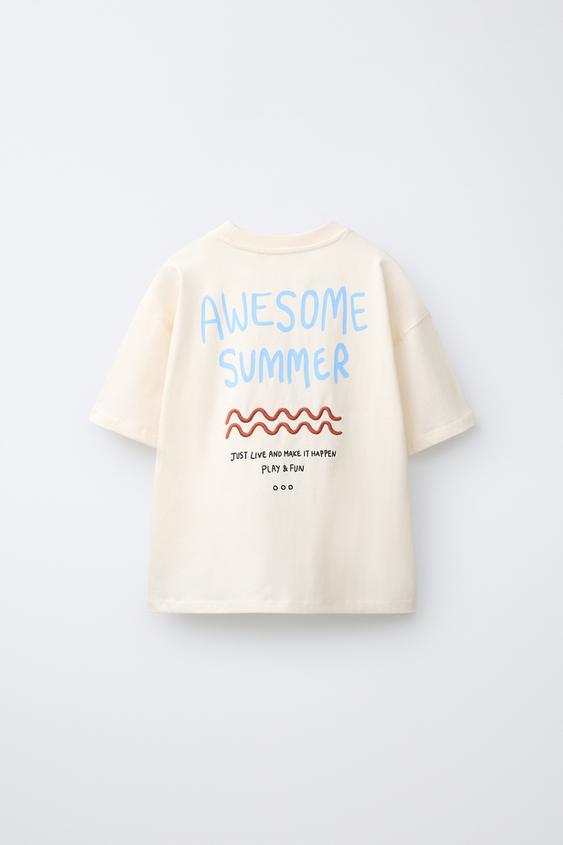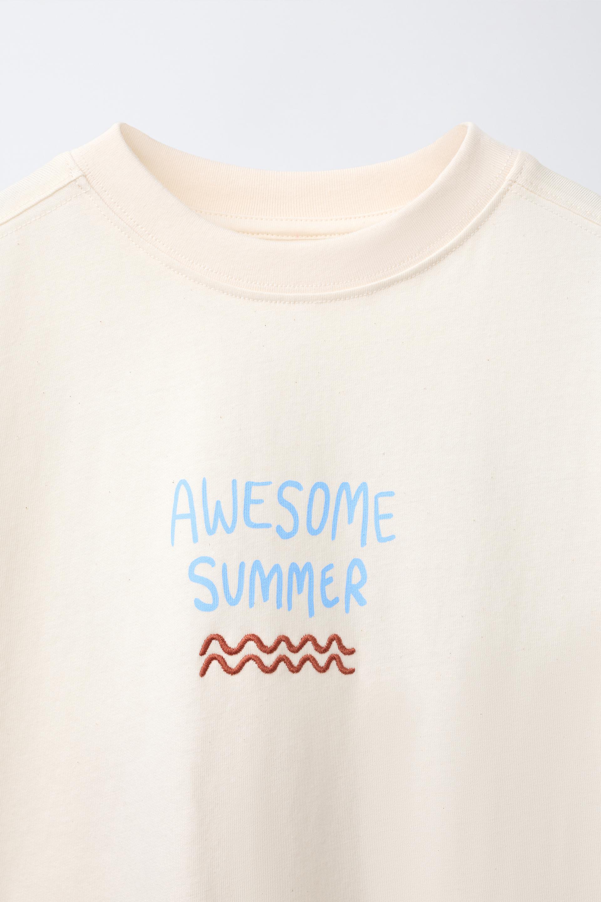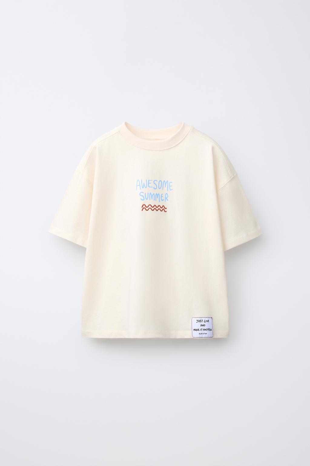 ZARА ФУТБОЛКА С НАДПИСЬЮ, ЭКРЮ