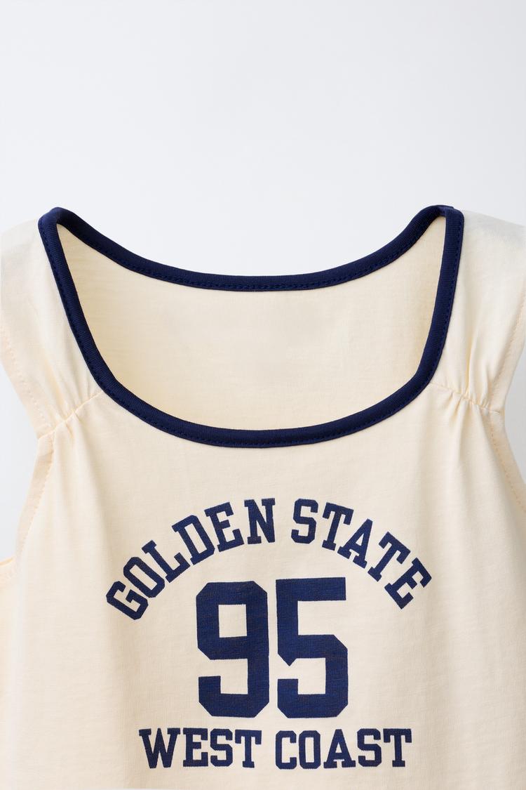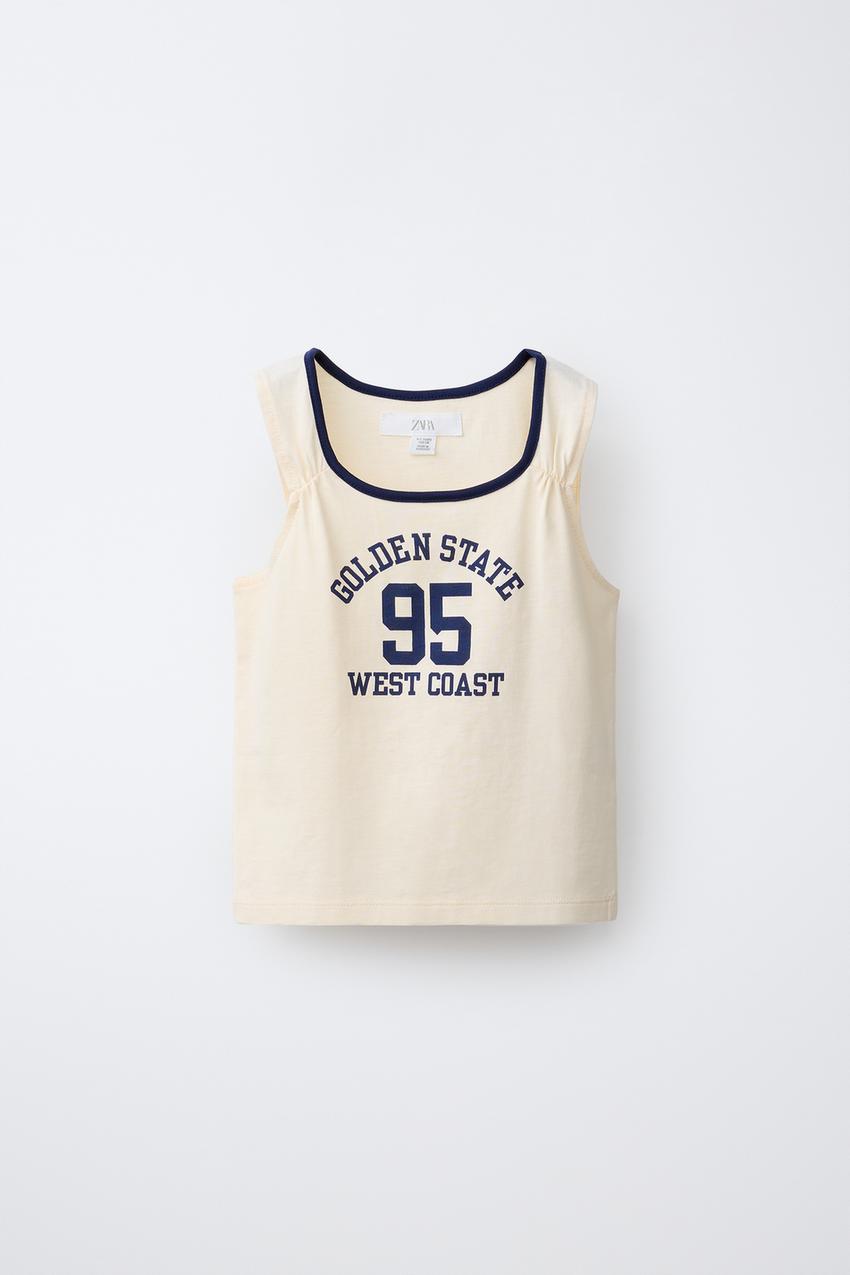 ZARA ФУТБОЛКА С НАДПИСЬЮ И КОНТРАСТНОЙ ОТДЕЛКОЙ, ЭКРЮ